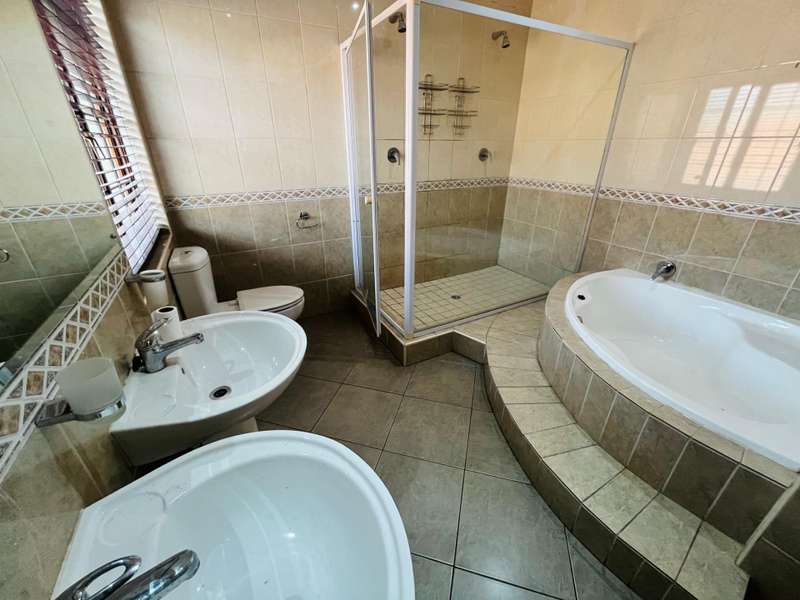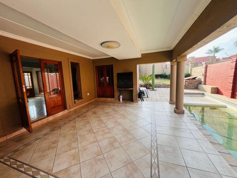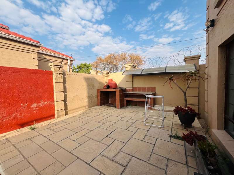 Step into luxury living with this immaculate double-storey standalone villa that offers the perfect blend of space, privacy, and stylish indoor-outdoor flow. Ideal for families or entertainers, this stunning home is nestled in a peaceful setting with its own private entrance and boasts a spacious landscaped garden, sparkling swimming pool, and an entertainer?ÇÖs patio complete with built-in braai and pizza oven. Property Features: 3 / 4 Spacious Bedrooms (customize depending on actual layout) 2.5 Modern Bathrooms Open-plan living and dining areas with ample natural light Modern kitchen with quality finishes and generous storage Double garage with direct access Private helpers' room with separate entrance and bathroom Large, pet-friendly garden with lawn and mature trees Swimming pool with paved lounging area Covered patio with built-in braai and wood-fired pizza oven ?Çô perfect for entertaining year-round Secure, fully walled property with remote access Why You'll Love It: This home is designed for easy living and relaxed entertaining. Whether you're hosting a summer braai by the pool, making homemade pizzas under the stars, or enjoying a quiet morning coffee in your lush garden, this property offers space, comfort, and privacy in one beautifully maintained package.