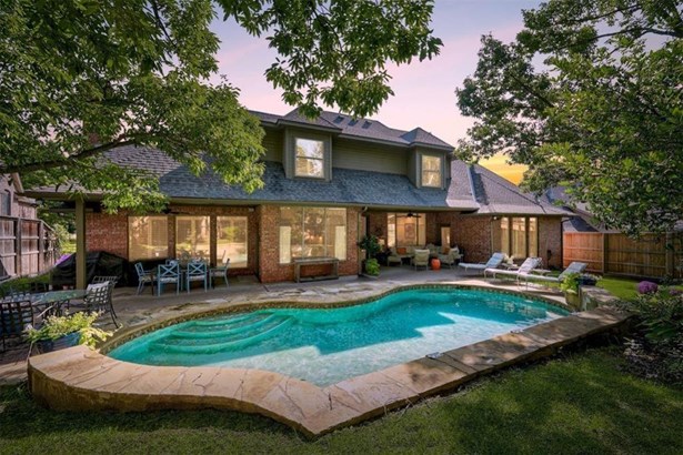 Welcome to Woody Creek#x2014;an established luxury neighborhood in the heart of Edmond known for its tree-lined streets timeless architecture and a true sense of community This beautifully designed residence offers over 3700 square feet of thoughtfully curated space blending functionality with refined style From the moment you arrive the stunning curb appeal sets the tone for what#x2019;s inside Step through the entry and into the formal dining room#x2014;an elegant space ideal for entertaining guests or hosting holiday gatherings The expansive living room anchored by a warm fireplace and durable tile floors serves as the heart of the home Plantation shutters add a tailored touch while the open-concept layout creates an effortless flow into the chef#x2019;s kitchen Designed with both everyday living and hosting in mind the kitchen features double ovens ice maker a gas range extensive cabinetry and a breakfast area that overlooks the backyard The spacious primary suite is tucked away for privacy and features a spa-like bath with a soaking tub walk-in shower and double vanities A dedicated study offers a quiet retreat for work or reading while the upstairs bonus room adds versatility#x2014;perfect as a media room playroom or additional living area Each secondary bedroom is generously sized offering comfort and flexibility for guests or family Step outside and discover your personal outdoor oasis: two covered patios with ample space for seating and dining and a sparkling pool with waterfall feature#x2014;the perfect backdrop for summer gatherings or relaxing evenings Inground storm shelter in the garage Roof replace in 2020 As a Woody Creek resident you#x2019;ll enjoy premier community amenities including social holiday gatherings With 4 bedrooms 35 bathrooms and an ideal blend of indoor-outdoor living this home checks every box Located within one of Edmond#x2019;s most coveted communities this is the lifestyle youve been waiting for