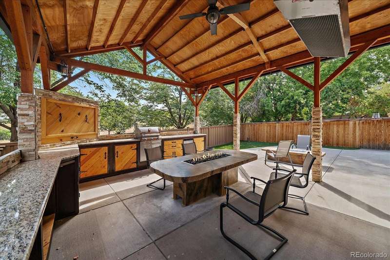 Highlands Ranch Beauty with Indoor/Outdoor Living at Its BestStep into this Highlands Ranch stunner where pride of ownership shines and thoughtful updates abound. From rich hardwood floors on the main and upper levels to wrought iron rails, wood accents, fresh paint, and updated lighting, this home is truly a gem.With 4 bedrooms and 4 full baths, the flexible layout offers space for everyone. The main floor features a spacious primary suite plus a versatile bonus roomperfect as a guest bedroom, office, exercise space, or playroom. The open kitchen boasts granite countertops, stainless steel appliances, and a large center island overlooking the dramatic two-story family room, complete with a gas fireplace and flat-screen TV.Step outside to the private, covered Colorado Rooman entertainers dream with two built-in gas fire pits, a full outdoor kitchen and entertainment center, plus a heater for year-round enjoyment.Upstairs youll find two generous secondary bedrooms and an updated full bath. The fully finished basement expands your living space with a huge rec room, full bath, updated systems, tankless hot water heater, and even an additional laundry hookupideal for multi-generational living or weekend guests.Additional highlights include a main floor laundry, attached 2-car garage, and access to all four Highlands Ranch recreation centers with pools, parks, and miles of trails. Conveniently located near shopping, dining, and the C-470 corridor, this home offers the perfect blend of comfort, style, and location. A 2/1 rate buy down is available with a preferred lender.