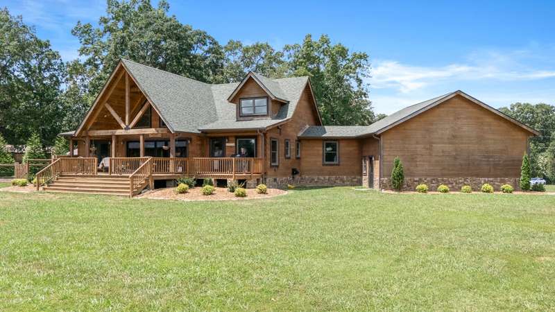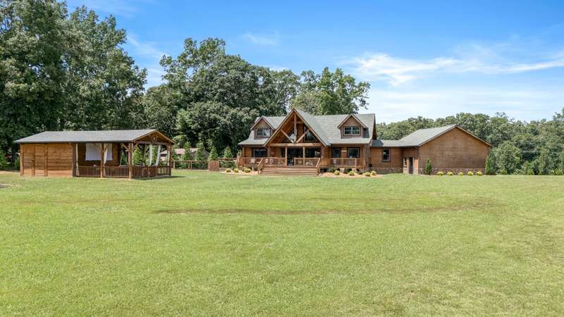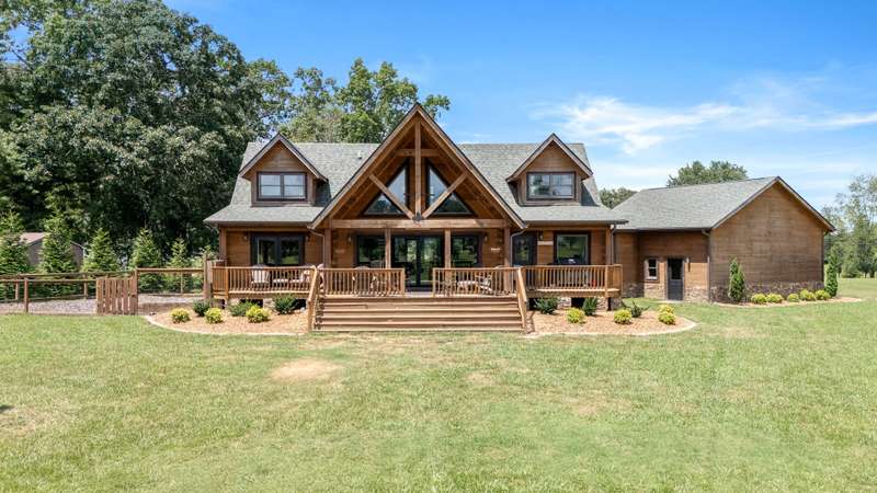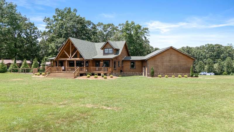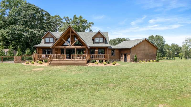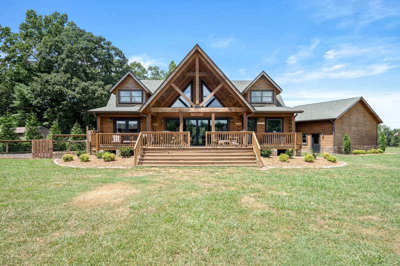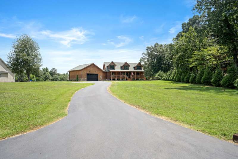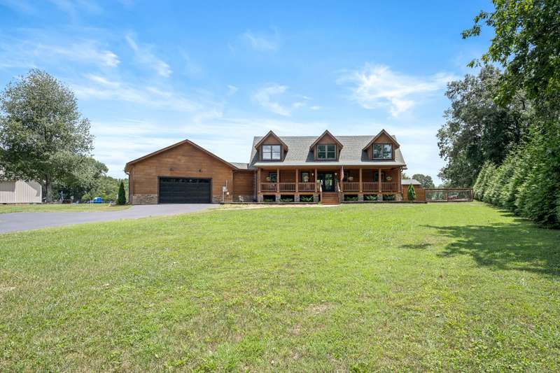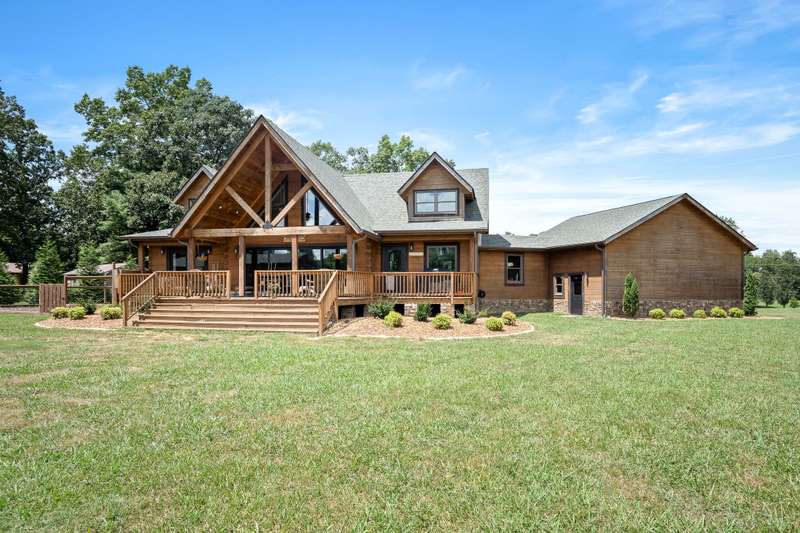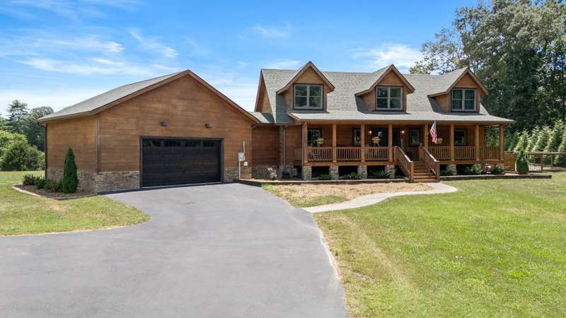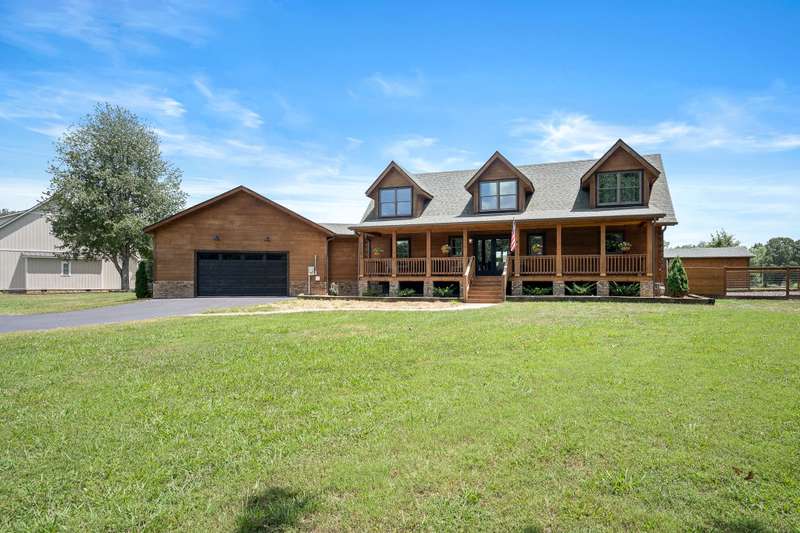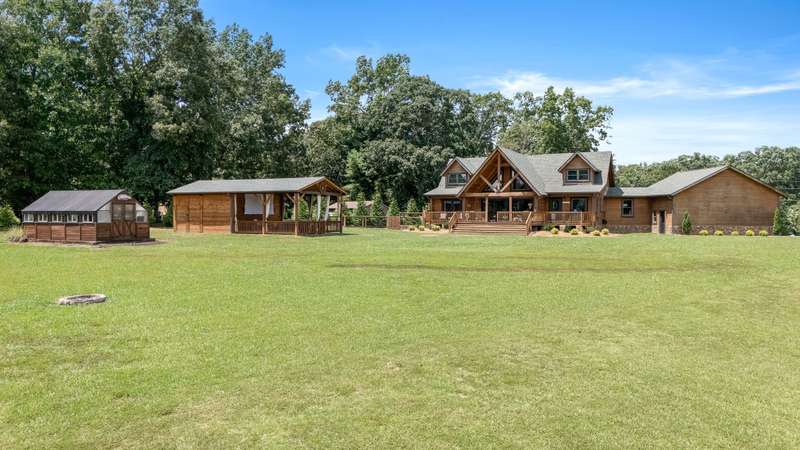 Custom Log Home just built in 2022 features right under 2,400 square feet, barn that is wired for electricity w/covered movie porch, working greenhouse that is plumbed and wired for electricity, raised garden beds, firepit, 2 car garage w/storage loft, gas log fireplace, gorgeous covered porches, and situated on 2.22 acres. Custom features include copper sink and tobacco barnwood island counter top, butler's pantry, tons of storage, gas stove, dog run, invisible dog fence for the front and backyard, tankless water heater, 4 sliding barn doors, potential for a sleeping loft upstairs if a 3rd bedroom is needed, and primary large walk in tile shower and walk in closet. Approved for a 3 bedroom septic.