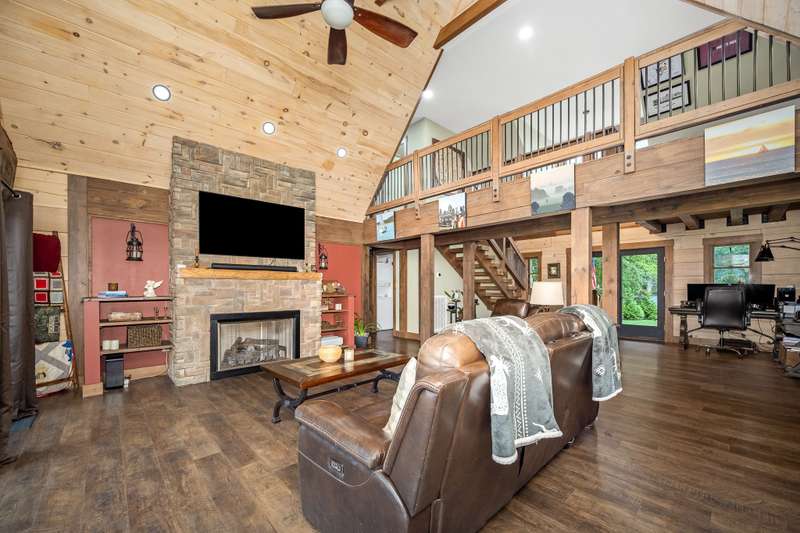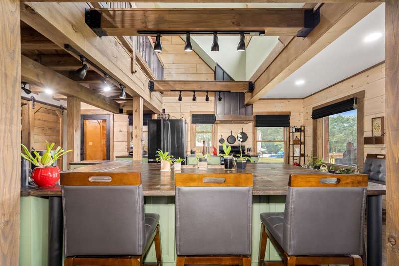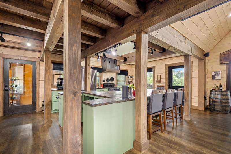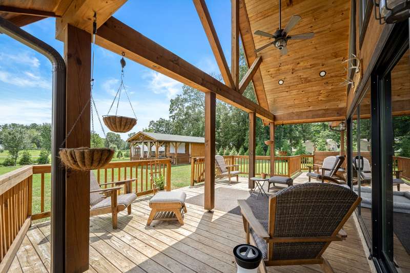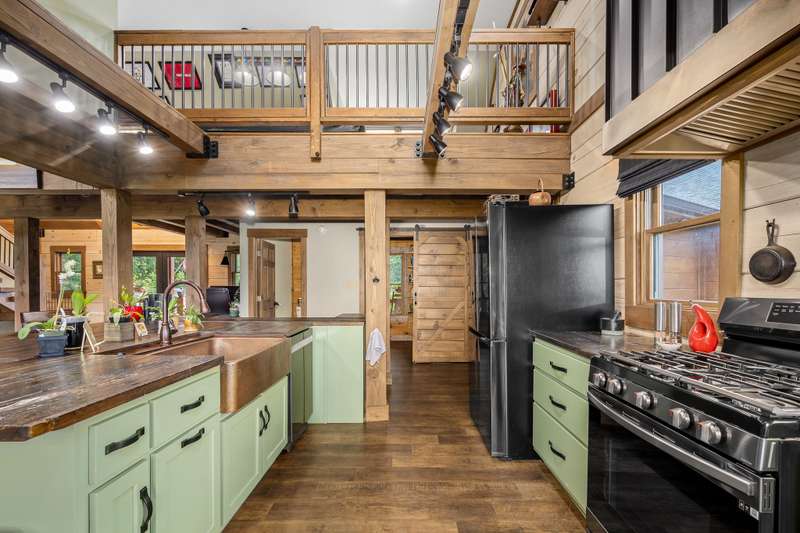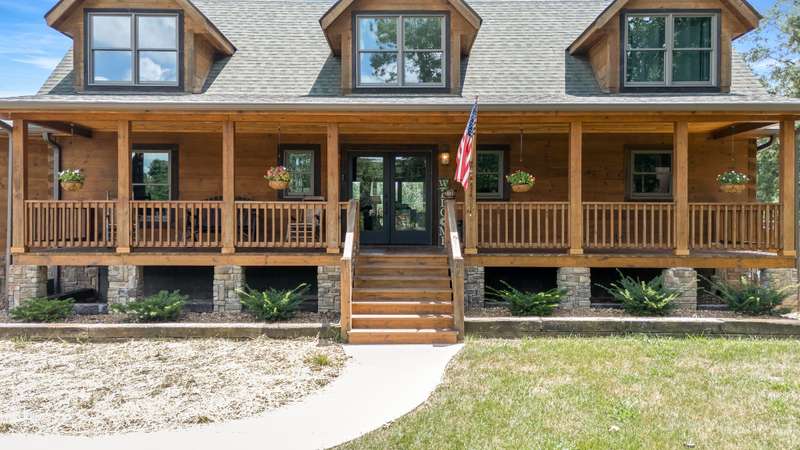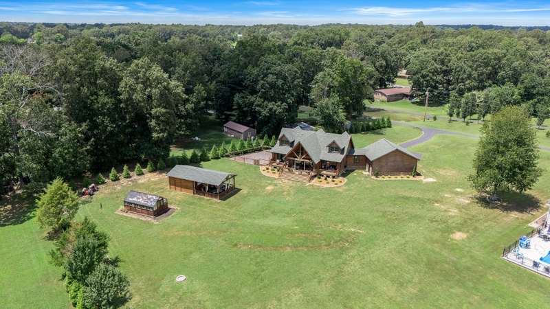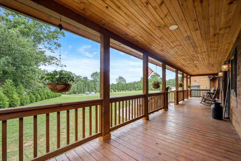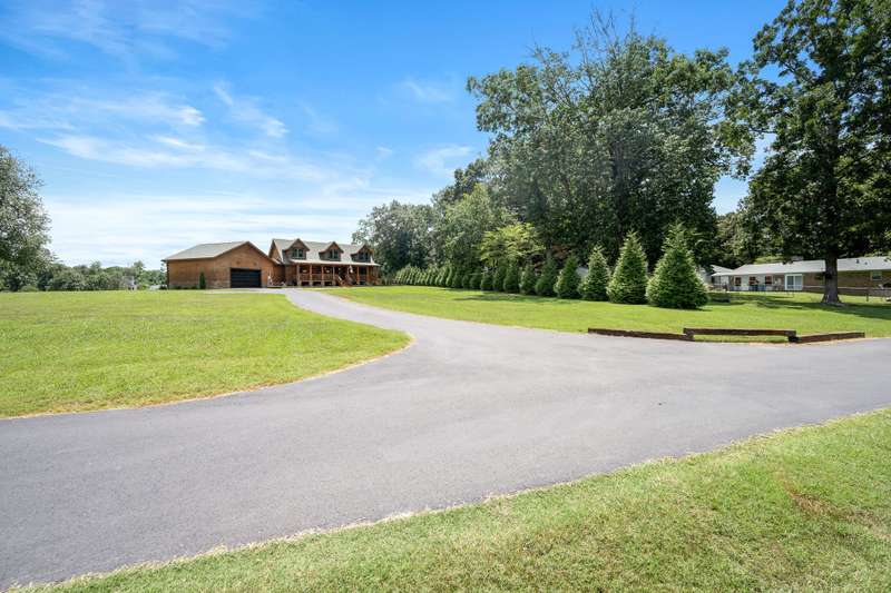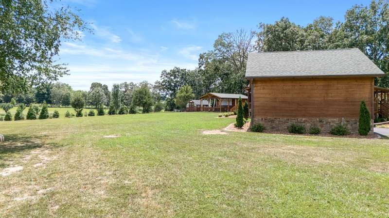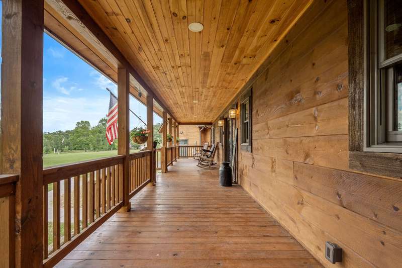 Custom Log Home just built in 2022 features right under 2,400 square feet, barn that is wired for electricity w/covered movie porch, working greenhouse that is plumbed and wired for electricity, raised garden beds, firepit, 2 car garage w/storage loft, gas log fireplace, gorgeous covered porches, and situated on 2.22 acres. Custom features include copper sink and tobacco barnwood island counter top, butler's pantry, tons of storage, gas stove, dog run, invisible dog fence for the front and backyard, tankless water heater, 4 sliding barn doors, potential for a sleeping loft upstairs if a 3rd bedroom is needed, and primary large walk in tile shower and walk in closet. Approved for a 3 bedroom septic.
