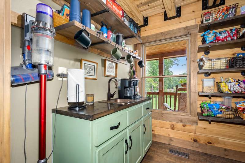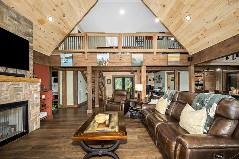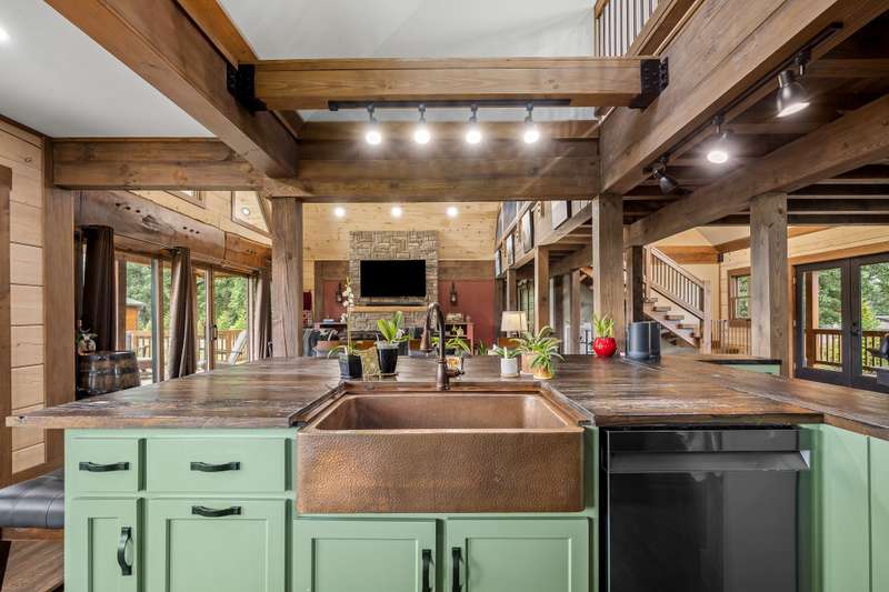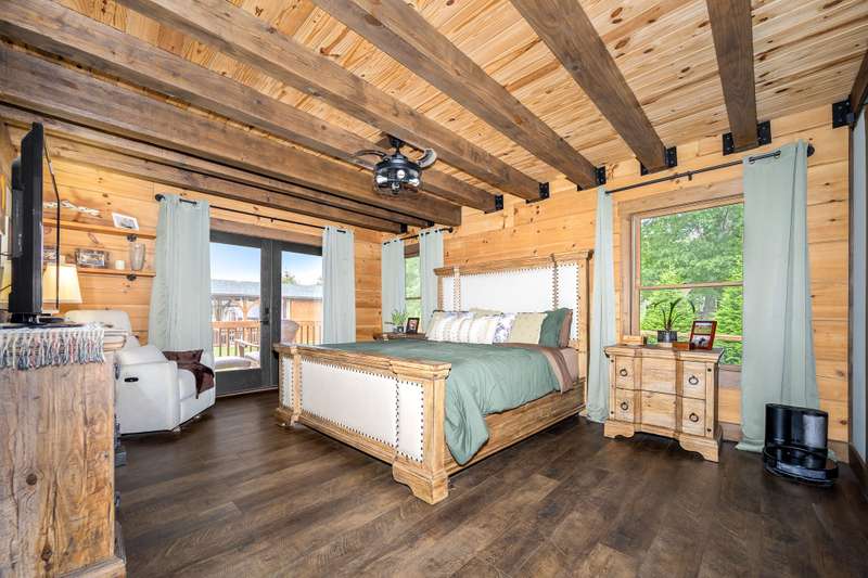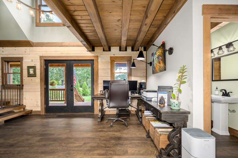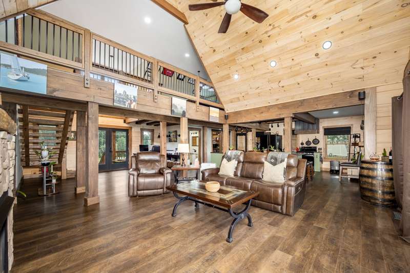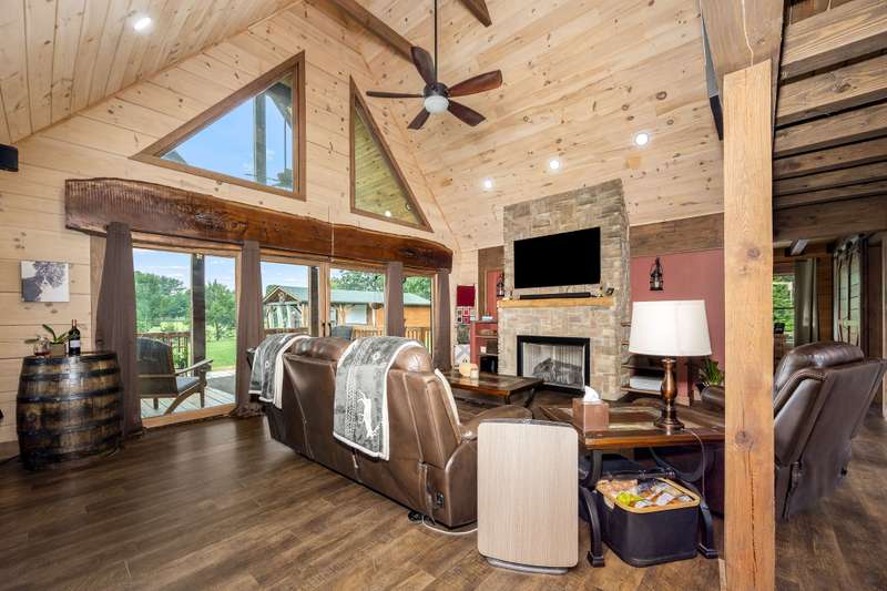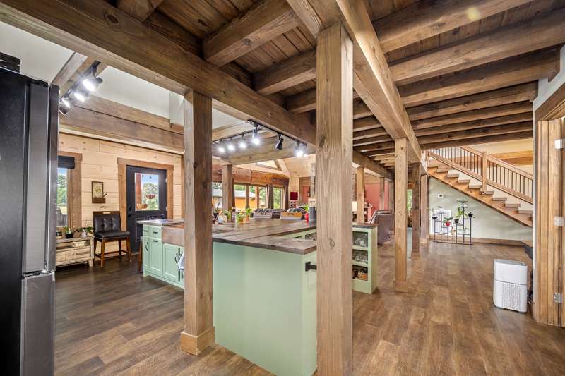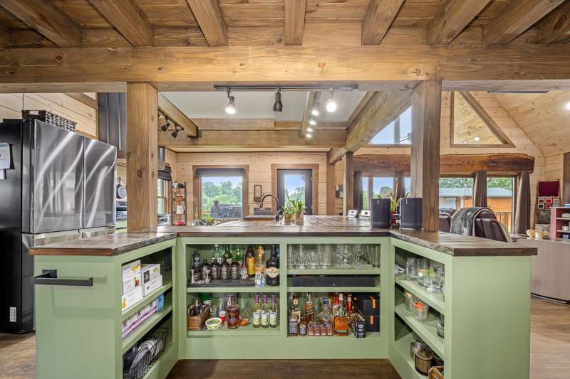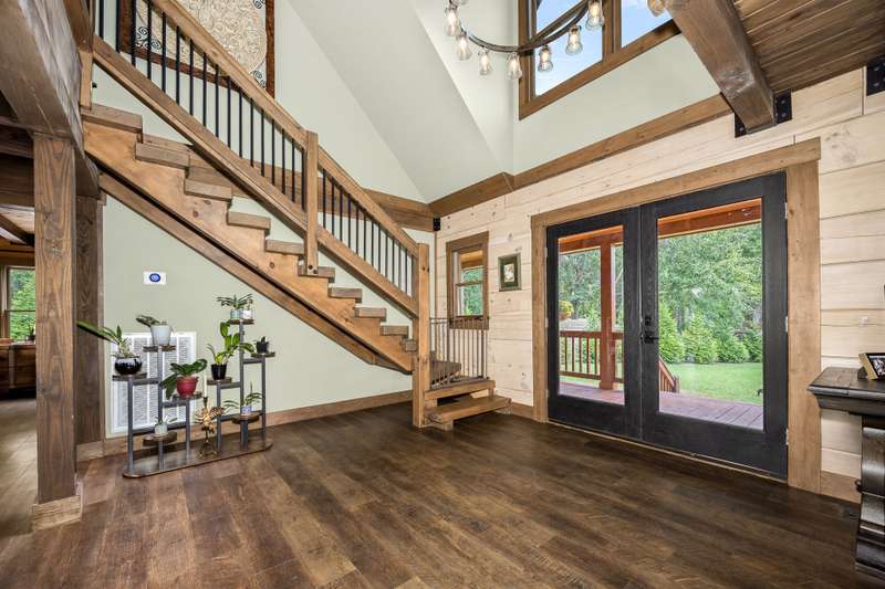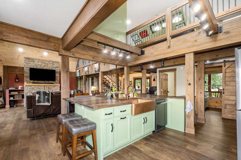Custom Log Home just built in 2022 features right under 2,400 square feet, barn that is wired for electricity w/covered movie porch, working greenhouse that is plumbed and wired for electricity, raised garden beds, firepit, 2 car garage w/storage loft, gas log fireplace, gorgeous covered porches, and situated on 2.22 acres. Custom features include copper sink and tobacco barnwood island counter top, butler's pantry, tons of storage, gas stove, dog run, invisible dog fence for the front and backyard, tankless water heater, 4 sliding barn doors, potential for a sleeping loft upstairs if a 3rd bedroom is needed, and primary large walk in tile shower and walk in closet. Approved for a 3 bedroom septic.
