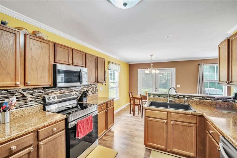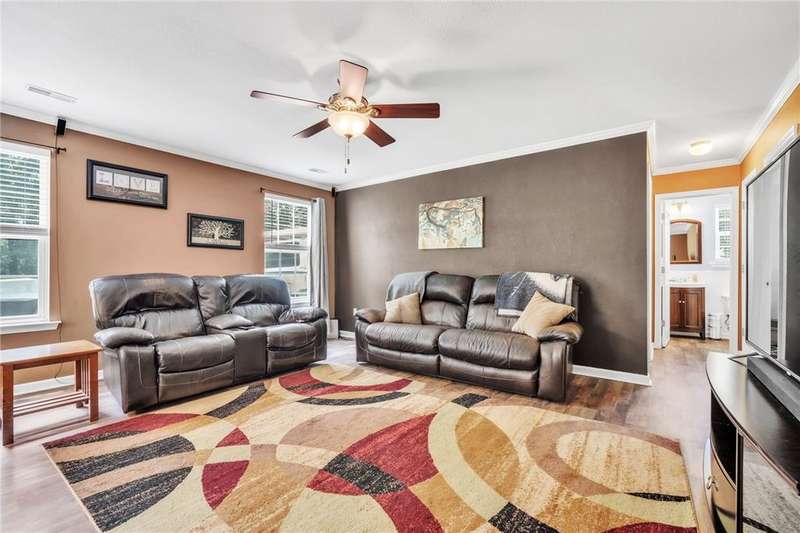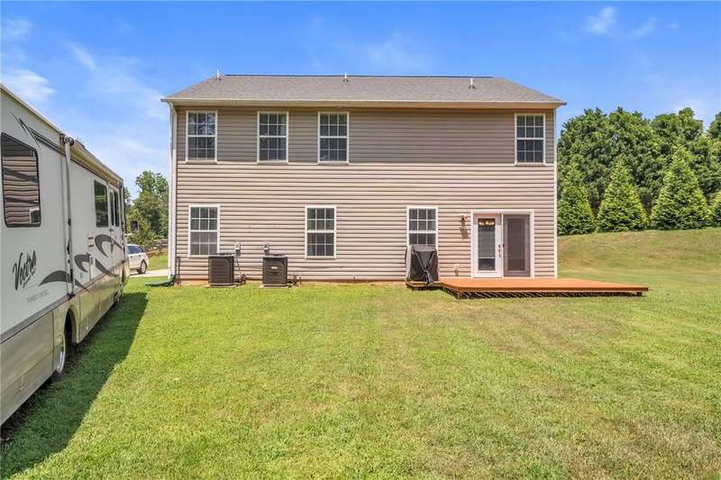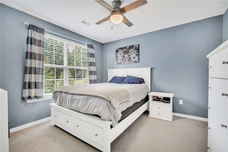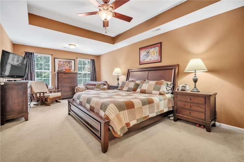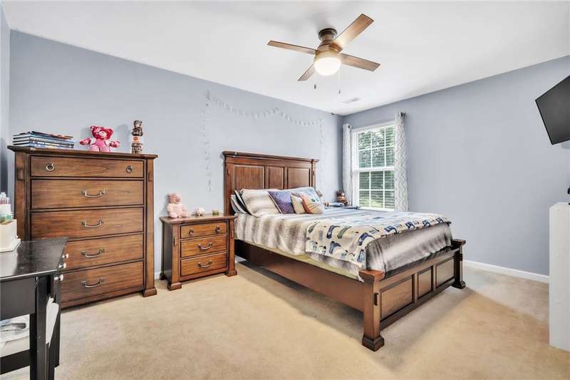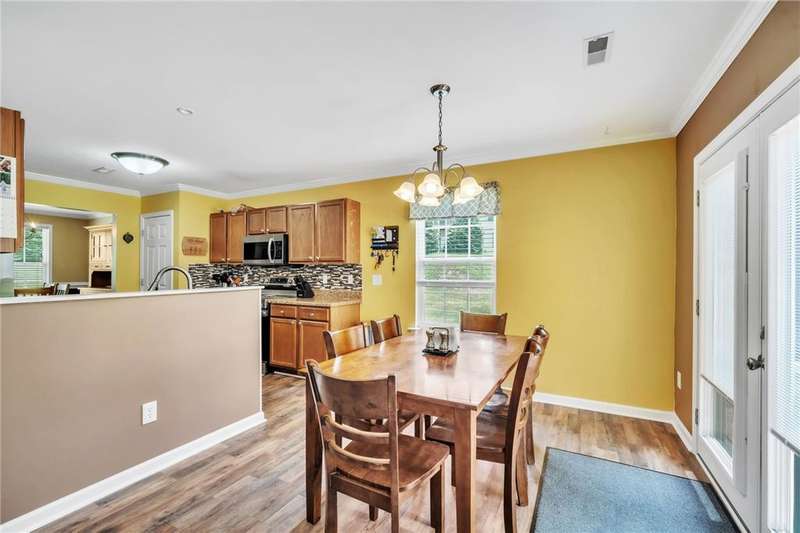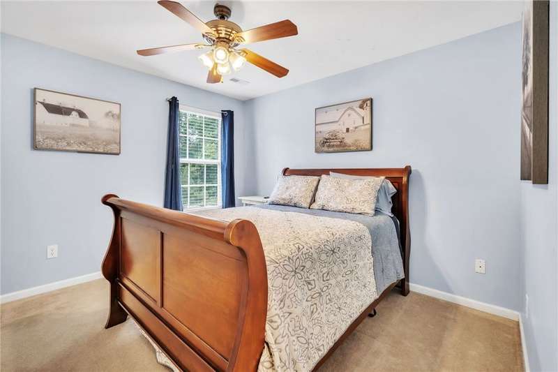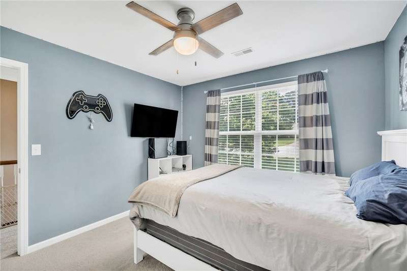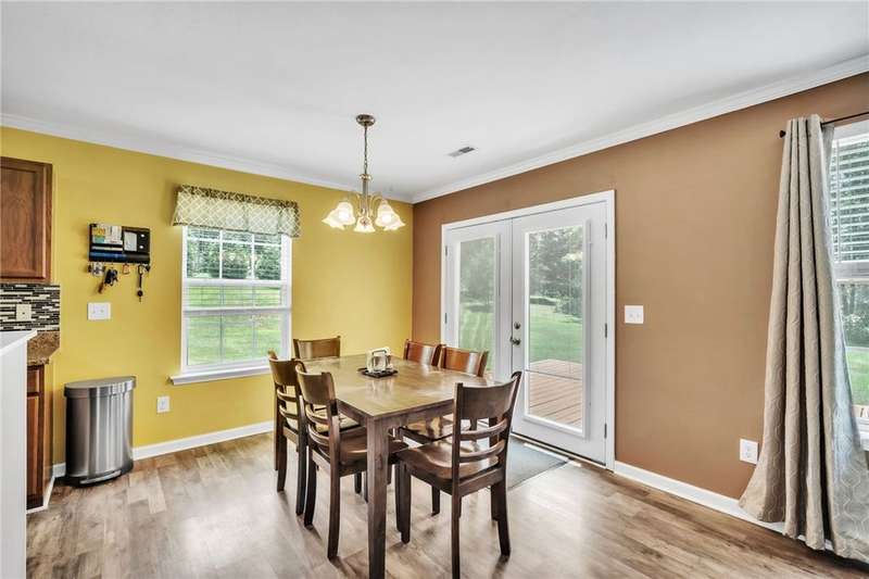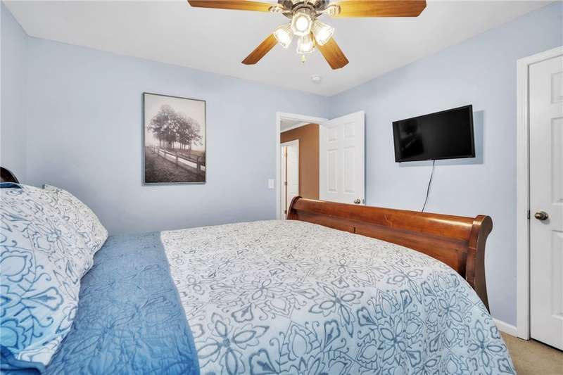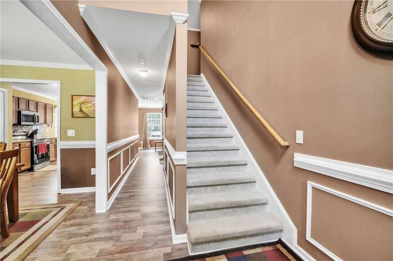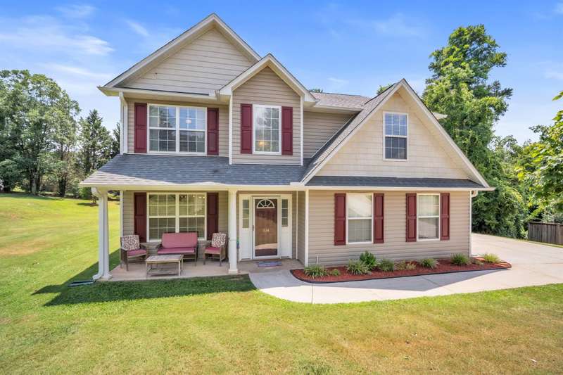 Imagine the quiet as you sit on your back (or front) porch enjoying your morning coffee. Step inside and see the formal dining room next to a gorgeous full kitchen (includes new stainless appliances installed in 2023) that overlooks the TV room. Enjoy the comfort of a downstairs bedroom and bath. Upstairs features a large Primary bedroom with a sitting area and an en-suite bathroom with all the room and amenities you need. Additionally, the walk-in closet is located off the en-suite bathroom. If you have lots of laundry, you're sure to love the upstairs laundry room! Outside, the large pie-shaped lot offers plenty of room for fun and outdoor activities. Fridge conveys. Roof is new as of 2022 with a transferable warranty (for a fee), New water heater 2025, New downstairs heat pump/AC 2020, new upstairs heat pump/AC 2019. Full downstairs LVP installed in 2020. This home is move-in ready!