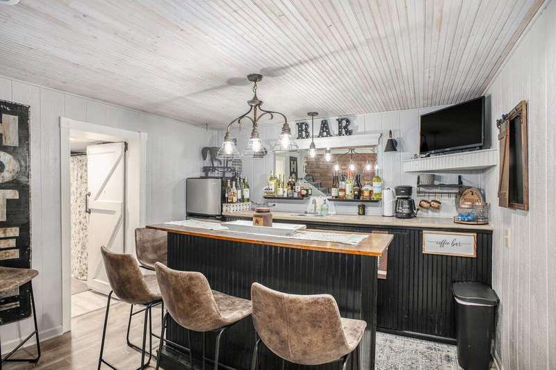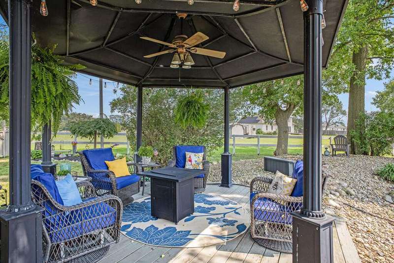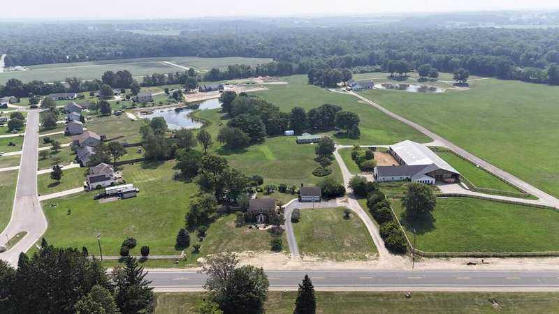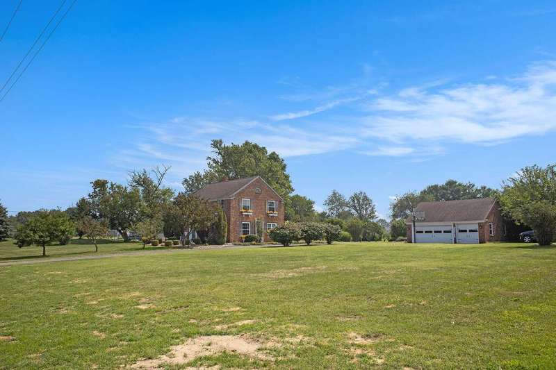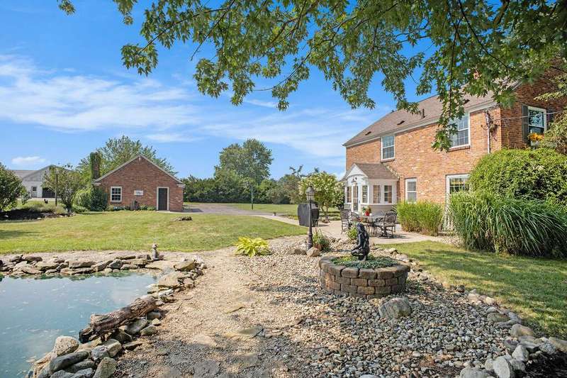 This spacious 3-bedroom, 2-story brick home offers the perfect blend of comfort, versatility, and outdoor beauty. Need a fourth bedroom? The main-level salon space can easily be converted to suit your needs. Enjoy the peaceful setting just outside city limits, featuring a stunning decorative/swim pond with a newer shed perfectly positioned to overlook the water. The finished basement adds great living space with a cozy family room, full bath, and a stylish wet bar-ideal for entertaining. A 3-car detached garage and inviting outdoor patio complete this one-of-a-kind property. Updates include newer drywells, replacement windows, Dishwasher, water heater, flooring in basement and more.
