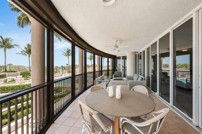 Directly on the Beach in Bay Colony! The Remington stands among Naples' most prestigious beachfront addresses. Residence 202, the largest 02-tier plan, showcases sweeping views of the Gulf of Mexico, pristine white sand, and lush tropical surroundings. Recently renovated, the residence offers over 3,243 sq. ft. of light-filled, airy living space. The custom design features a spacious great room, a striking island kitchen with a morning room, and an expansive lanai perfect for indoor-outdoor living. The exceptional primary suite includes a private sitting room, complemented by two additional en-suite guest bedrooms. Just steps from Bay Colony's private Beach Club-with full beach dining and service-residents also enjoy access to the Bay Colony Tennis Club. Next door, the world-renowned Ritz-Carlton provides exclusive privileges and select Five-Star resort amenities. Set within Bay Colony's guard-gated seaside enclave, the Remington offers unmatched security, privacy, and first-class amenities in one of Naples' most coveted communities.