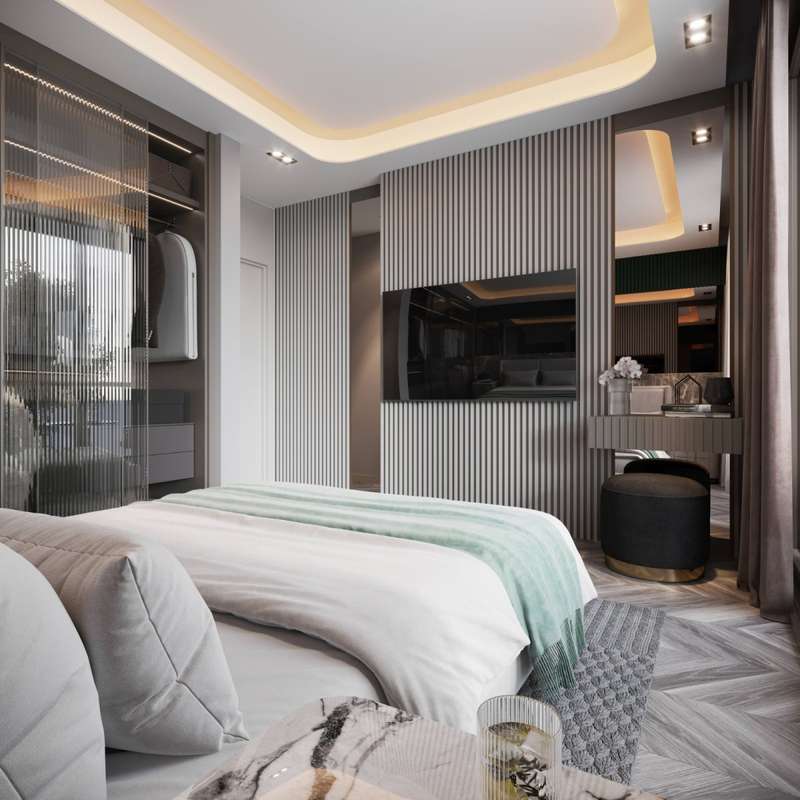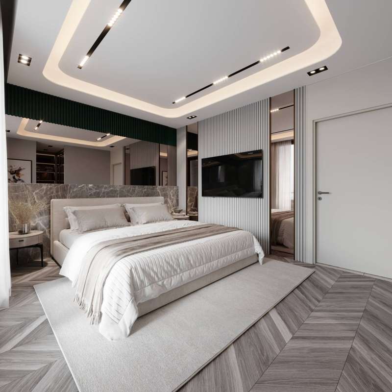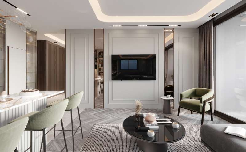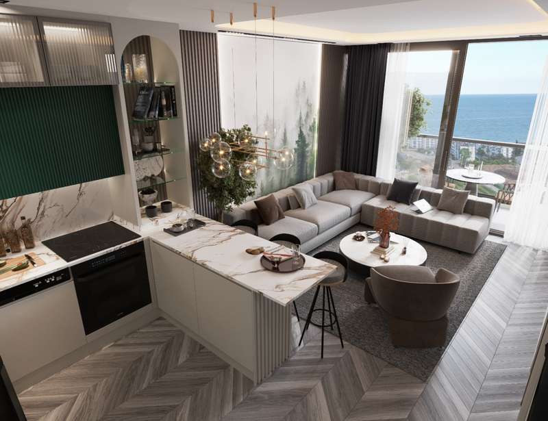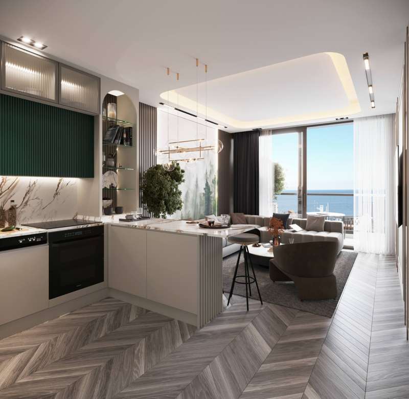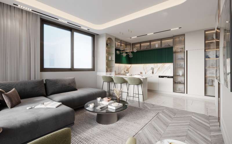 The apartments, ranging from 1 to 3 bedrooms, consist of a living room, open-plan kitchen, shared bathroom or en-suite bathroom, dressing room, and balcony units. These brand-new apartments, distinguished by their quality craftsmanship, are equipped with top-tier products and materials.