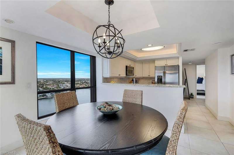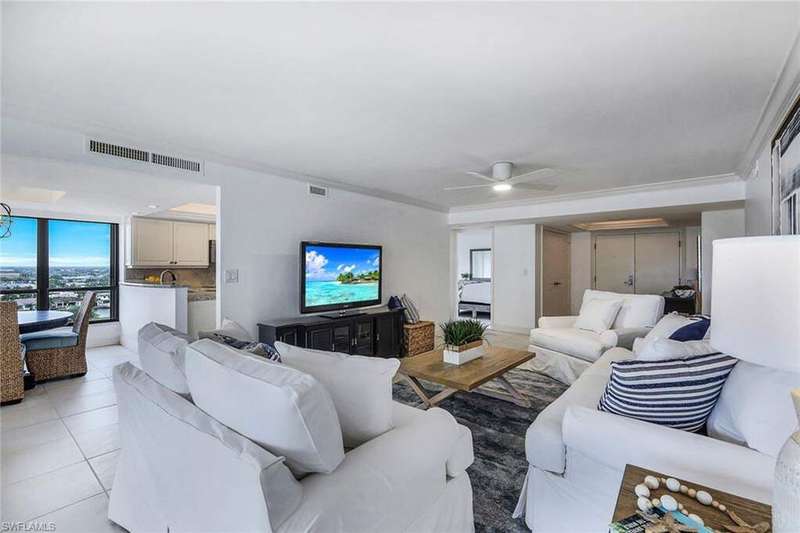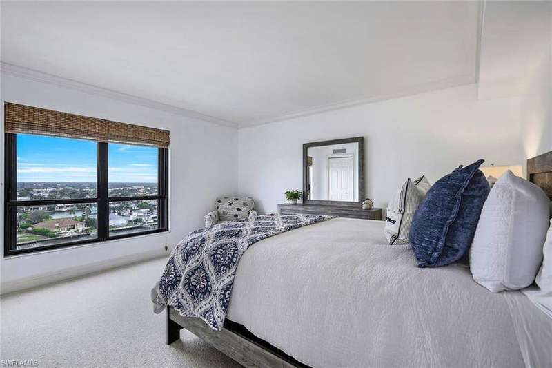 Perched high on the 16th floor, this updated 3-bedroom, 3-bath residence combines sophistication, comfort, and breathtaking views in the heart of Naples. Each bedroom features its own en-suite bath, offering the perfect retreat for owners and guests alike. Flooded with natural light through numerous windows, the residence spans 2,030 sq. ft. of air-conditioned living (2,300 total) and is offered turnkey furnished and ready for you to move right in. Two private balconies showcase stunning panoramas: on one side, the sparkling Gulf of Mexico and Naples' legendary sunsets; on the other, the shimmering waters of Venetian Bay and the Park Shore skyline. Life at Solamar is truly exceptional. Nestled on 4.5 acres of beautifully landscaped grounds, shared by only a select few prestigious Gulf-front condominiums, Solamar offers privacy and exclusivity. Just steps away, residents enjoy direct access to the pristine beaches of Naples and the coveted two-mile Park Shore boardwalk, a private waterfront promenade reserved exclusively for Park Shore residents. The recently updated amenities are designed for both relaxation and recreation: a 24-hour staffed front desk, an expansive recreation deck perfectly positioned for sunsets, two guest suites, a social room, library, wellness center, and fitness center. Outdoors, the recreation deck features a resort-style pool and spa, tennis court, and grills with dining area. A vibrant social calendar offers activities and events to suit every interest. Adding to its allure, Solamar is located just down the street from the renowned Village on Venetian Bay, one of Naples' premier waterfront destinations. With more than 45 luxury boutiques and waterside restaurants, the Village offers everything from casual waterfront dining to fine cuisine and upscale shopping-all just moments from your doorstep. This is more than a condo, it's an invitation to experience the ultimate Naples waterfront and beach lifestyle in Park Shore.