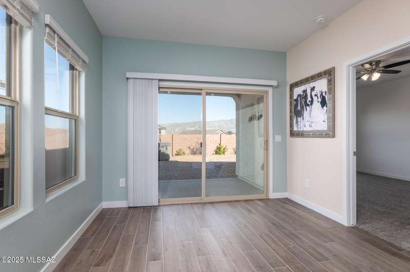 Home tour winner!! Charming 3-bedroom, 2 bath contemporary located in the highly sought after Vail school district. Light and bright kitchen features quartz counter tops, island, stainless steel appliances, gas range and a dining area open to the great room The spacious primary suite includes high ceilings and an ensuite that also features quartz countertops, a large walk in closet and dual vanities. Enjoy a beautifully finished backyard with pavers, spa, artificial turf and covered patio and gorgeous mountain views--all on a quiet street and just minutes from golf, shopping, and dining. Built in 2024 means AC, appliances and roof are practically new. You have nothing to do but move in your new home is waiting!