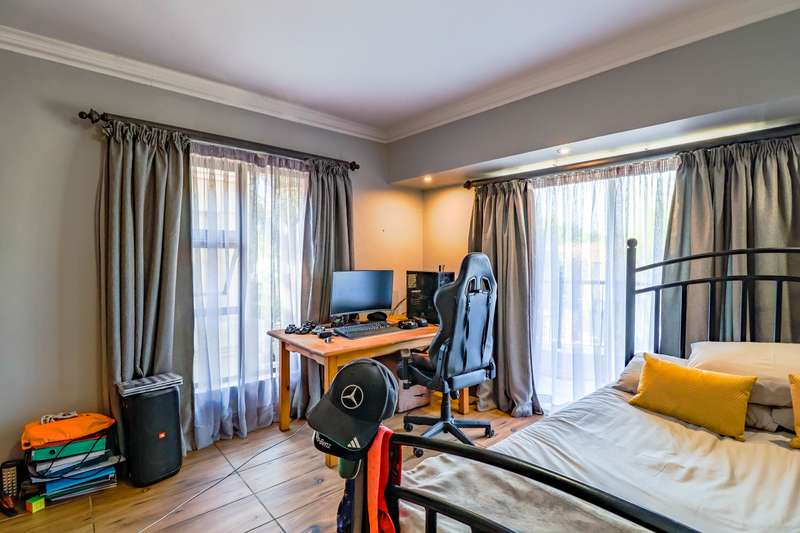 The Property Offers: • 4 Bedrooms upstairs, including a master suite with a walk-in closet, luxury en-suite & large private patio • Additional baby room plus a separate study room • Elegant entrance hall with indoor fountain & sweeping staircase • Two lounges and open-plan dining area • Built-in bar with wine display, ideal for entertainment • Modern kitchen with granite tops, center island, scullery & pantry • Underfloor heating in selected rooms for extra comfort Outside: • Covered patio with built-in braai, flowing to garden & pool • Sparkling swimming pool surrounded by greenery • Entertainment room with gas braai & direct patio access • Flatlet – perfect for extra income or Airbnb Additional Information: • Located in prestigious Centurion Golf Estate with 24/7 security • Estate lifestyle with golf course, clubhouse & communal facilities • Close to Centurion Mall, Irene link, Irene farm, Gautrain, SuperSport Park, easy access to N1 & R21 to OR Tambo • Timeless elegance combined with modern family comfort • A once-off compulsory buy-in levy of R37 000.00 which is payable upon sale of the property within the estate.