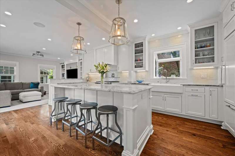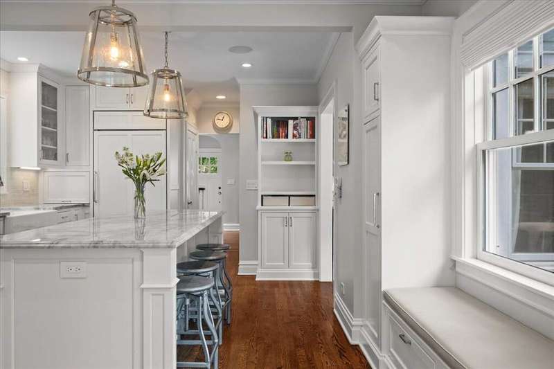Picture Perfect All-American Beauty in desirable Kenilworth! Storybook charm, this timeless, fully renovated Colonial, combines classic curb appeal with sophisticated modern updates! Every detail has been thoughtfully designed and impeccably executed. At the heart of the home lies a stunning, custom white kitchen that will delight any Chef: quartzite countertops, top-of-the-line SubZero and Wolf appliances, a large island with seating, and elegant custom cabinetry, the kitchen seamlessly opens into a spacious family room...ideal for everyday living and entertaining. From here, step right out to the newer Trex deck, perfect for alfresco dining or simply relaxing while overlooking the beautifully landscaped and fenced in backyard. Entertain guests in the gracious formal dining room or unwind by the fire in the inviting living room filled with natural light. Need a dedicated work-from-home space? A private sunroom/office on the main level is perfect for it. You will love escaping to the luxurious primary suite, high ceilings, a spa-like en-suite bath with a custom double vanity, walk-in shower and storage. Three additional bedrooms on this floor, including a tandem sunroom ideal as a playroom, study area, or an expansive walk-in closet. A beautifully renovated hall bath serves these bedrooms. Mudroom with cubbies is located conveniently off the rear staircase. The finished lower level has a rec room and ample storage options, while the unfinished third floor offers additional storage or potential expansion. Meticulously maintained, 2-car garage wired for an EV charger. Walk to Award-Winning Sears School (JK-8) and New Trier High School, minutes from the train, beach and the newly renovated Plaza Del shopping! JUST MOVE RIGHT IN!