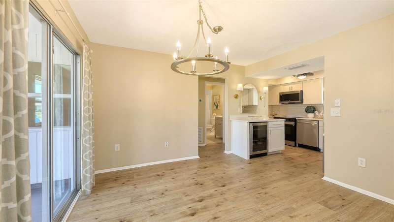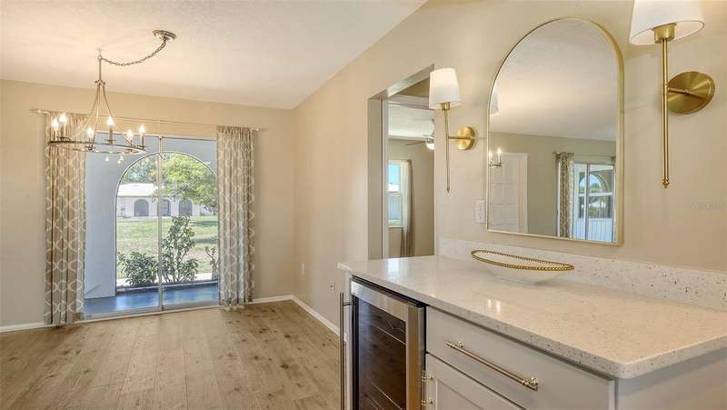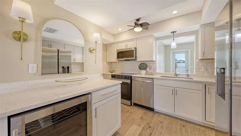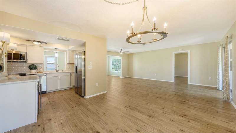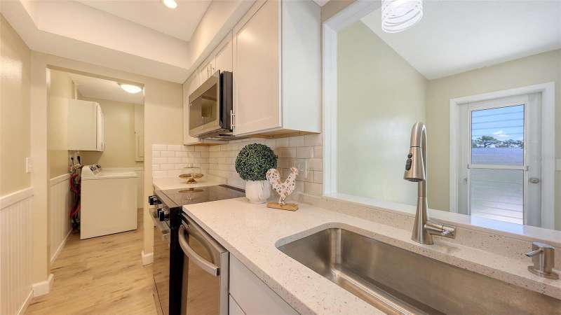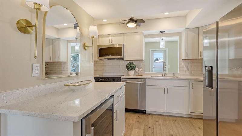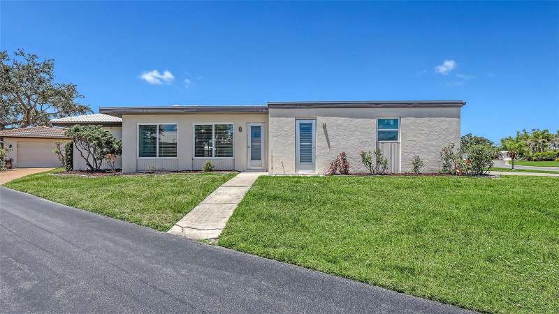 Tastefully remodeled free-standing villa in Sorrento East offers the feel of a single-family home but the maintenance free qualities of condo living. Brand new state of the art kitchen with new white cabinets, sparkling white quartz countertops and brand new stainless appliances. Both baths have been updated to a classy coastal vibe with new vanities, sinks, fixtures and mirrors, attention to every detail. Brand new driftwood colored waterproof laminate wood flooring throughout as well as new modern ceiling fans in every room. The newly installed hurricane impact windows and the 2025 AC system provide safety and peace of mind. An added bonus is the double wide driveway which can easily accommodate four cars. Plus, this home is NOT in a flood zone! The HOA covers maintenance of the grounds and maintenance of the exterior including roof replacement and paint. The sought-after community of Sorrento East is conveniently located between Venice and Sarasota, close to Nokomis Beach, shopping, restaurants, Oscar Scherer State Park and the Legacy Trail. This home is priced to sell! Call today for your own private showing.