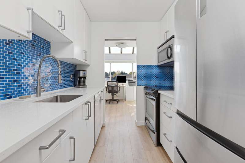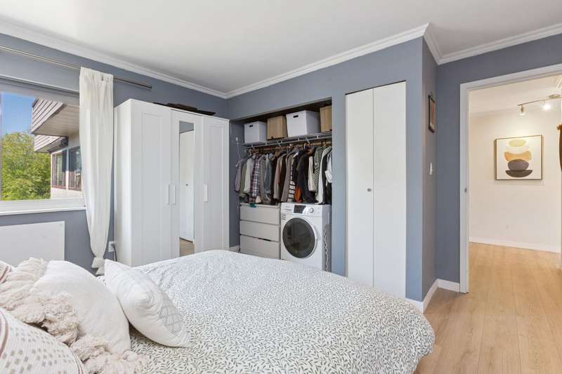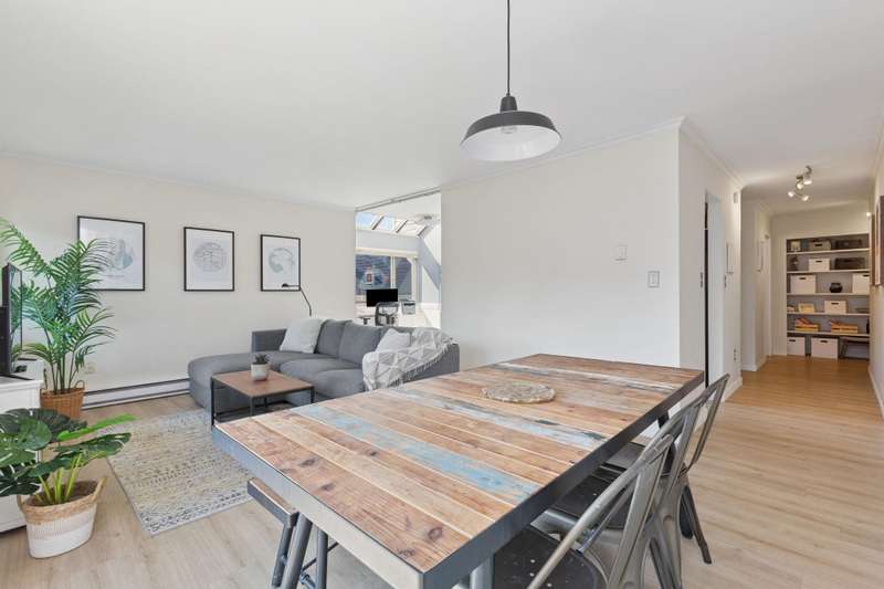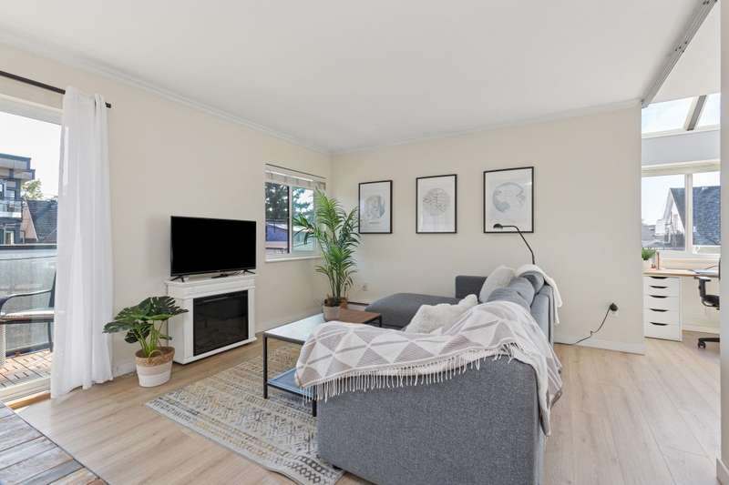 This desirable TOP FLOOR corner suite is perfect for FIRST time home buyers. 800 sq ft provides lots of versatility for this 1 bedroom and den that could be converted to a 2 bedroom. On a quiet tree lined street in MOUNT PLEASANT close to China Creek Park, shopping and restaurants on Main Street, a short stroll to VCC and the upcoming Broadway SkyTrain corridor. SKYLIGHTS, loads of windows and winter city VIEWS from the bedroom. BBQing is permitted on your SOUTH facing balcony. There's NEW flooring throughout, updated blinds, insuite washer/dryer combo approved by Strata, along with an updated kitchen and bathroom. Carolina Manor has been re-piped, updated parking membrane, replumbed and new balconies. Parking for 2 vehicles, storage locker and bike storage. A great sense of community!