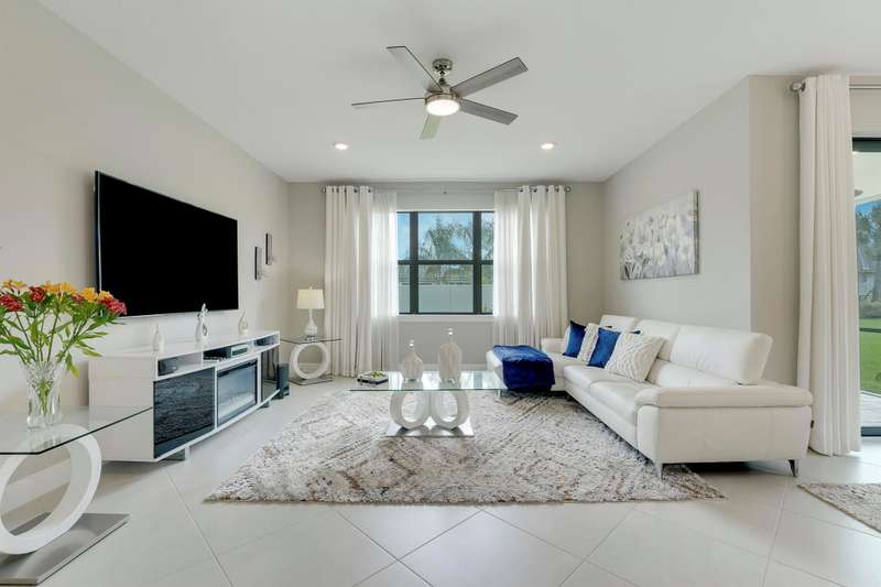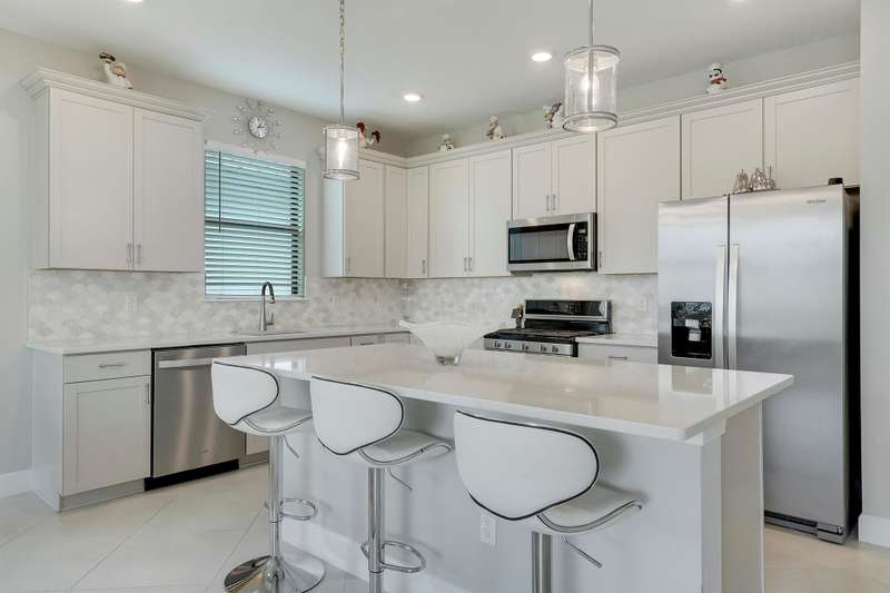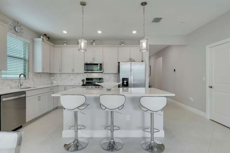 Live Smart. Live Beautifully in Veranda Gardens.This gorgeous one-level, 4-bedroom, 2-bath homea"only three years olda"welcomes you with soaring high ceilings that fill the space with natural light and an inviting modern feel. Perfectly located in the gated community of Veranda Gardens, it blends contemporary design, comfort, and the easy rhythm of Florida living.Step inside and feel the openness of the 22'' porcelain tile flooring that flows effortlessly throughout the home. The kitchen is truly the heart of it alla"featuring soft-close neutral gray cabinetry, a stunning quartz island and countertops, sleek modern backsplash, stainless-steel appliances, a gas range and hood, and a spacious walk-in pantry. It's an ideal space for both everyday cooking and weekend gatherings.