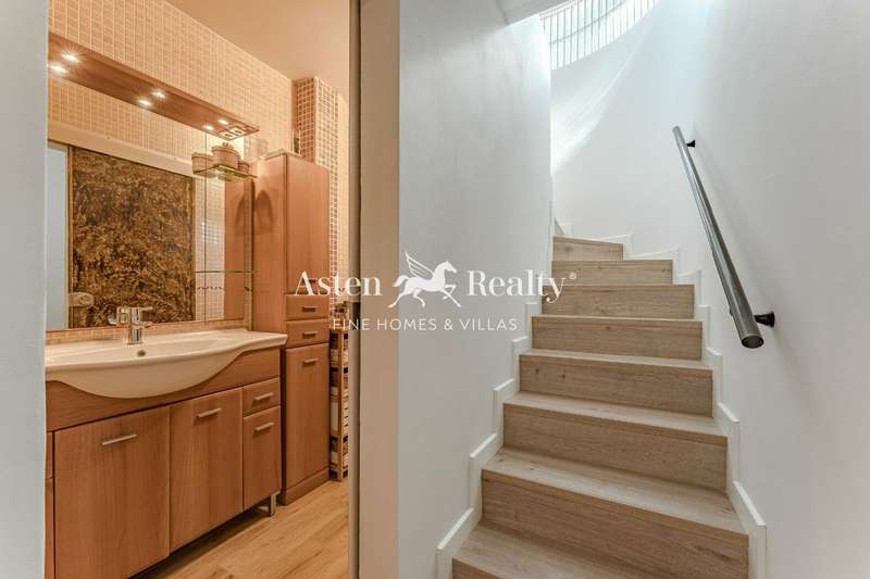 With two spacious terraces, one featuring a small garden with fruit trees and barbecue area and the other offering panoramic views, this residence provides ideal spaces for both relaxation and entertaining. Additional amenities include two storage rooms and a convenient parking space, ensuring practicality and ease of living.