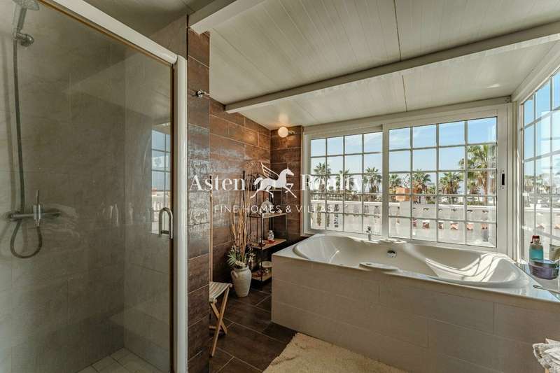 This exquisite villa in Costa Adeje offers a luxurious living experience with its 3 bedrooms and 2 bathrooms. The first bathroom features an elegant shower, while the second is a luxurious retreat with a combination of a shower and a rejuvenating Jacuzzi, all complemented by a stunning sea view, perfect for enjoying spectacular sunsets.