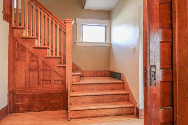 This charming home offers classic details and modern updates. Step onto the welcoming front porch and into a space filled with hardwood floors, tall ceilings, and a beautiful staircase. The main floor features a beautiful dining room, bright living room, large kitchen, a full bath, and loads of character. Upstairs, you'll find 4 bedrooms, a half bath and access to the walk-up attic--perfect for extra storage or future plans. All of this plus a full basement, detached 2-car garage, an adequately sized back yard with raised flowerbeds and shed. Conveniently located in a friendly neighborhood. Call today to schedule your showing!