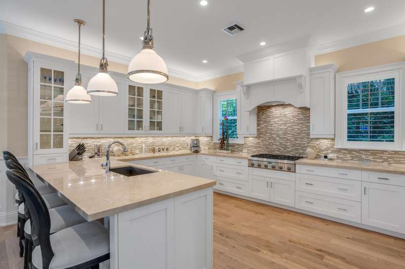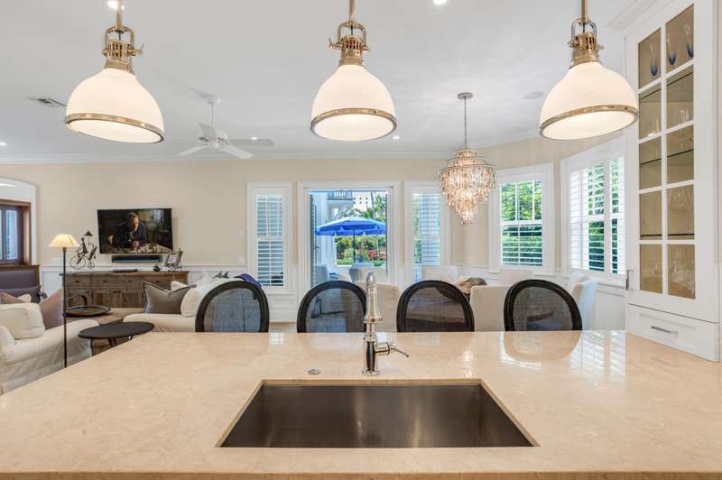 Brand-New island-inspired gem in an exclusive 4-estate enclave offering a wonderful lifestyle, only a block from both the ocean and Atlantic Avenue. Casual elegance pairs with master craftsmanship in the collaboration of GE Architecture and Seaside Builders. The atmosphere is fresh, light and inviting with crisp white millwork set off by the natural beauty of American oak floors. Spacious open great room. Romantic peaked-ceiling master suite. Separate guest apartment. Lushly landscaped pool patio