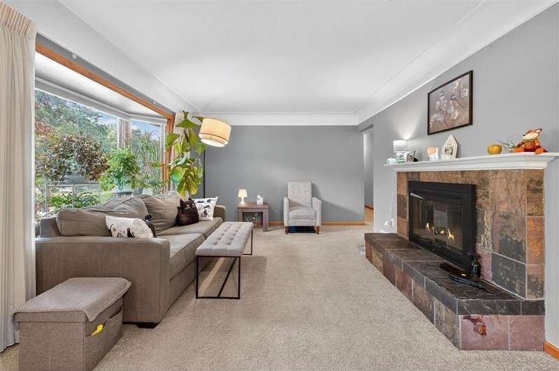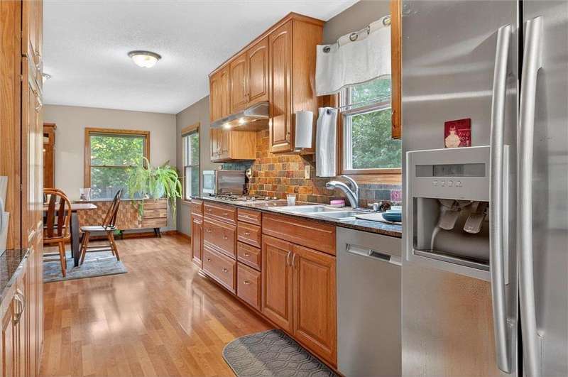 Welcome to this beautiful maintained 1950s-built rambler that seamlessly blends classic charm with modern updates. This spacious one-level home offers an exceptional layout featuring 3 bedrooms and 3 bathrooms on the main level, perfect for comfortable living and easy entertaining. The heart of the home is the gorgeous, updated Chef's kitchen, designed to impress. Enjoy rich wood cabinetry, sleek granite counter tops, double ovens, and stainless steel appliances. The kitchen opens to a sunny informal dining area and flows into the main level family room-ideal for everyday living or hosting gatherings. Just off the kitchen, you'll find a convenient main-level laundry room and a walk-through 3/4 bath for added functionality. The spacious primary suite offers a tranquil retreat with a full en suite bath featuring a separate tub and shower, plus a walk-in closet. The second bedroom also includes a private 3/4 bath and a generous closet, while the third bedroom offers flexibility for guests or a home office. Relax in the bright and inviting living room, highlighted by a classic wood-burning fireplace with brick surround and a large west-facing bay window that brings in beautiful natural light. Head downstairs to the lower-level amusement room, complete with a second wood-burning fireplace, ideal for cozy movie nights or game days. The lower level also offers walk-out access to the 3-stall garage, ample storage space, and a large utility/storage area, giving you space to stay organized and meet all your storage needs. Step outside to enjoy the private, fully fenced backyard, perfect for pets, gardening, or simply relaxing outdoors. Located just steps from a local park and playground, and offering easy access to major freeways, public transit, shopping, and the Minneapolis-St.Paul International Airport, this home is as convenient as it is comfortable.