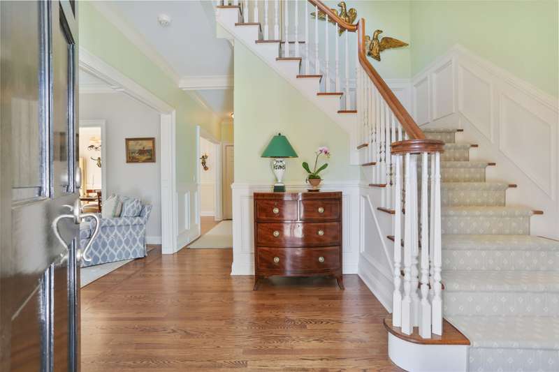 Perfection near town. Attractive and well done 4-bedroom with recent updates is situated on a lovely, quaint private lane off lower Lake Ave. Built by a local & award-winning high-end builder, this home has great flow for today's lifestyle. Lovely foyer leads to spacious well-lit living room & formal dining. Also, off the main hall is the family room w/fireplace which is adjacent to the stylish kitchen. The primary suite w/fireplace has a tray ceiling & new luxury bath. Bonuses: playroom, exercise area w/high ceilings, custom windows giving an enormous amount of light. Landscaped level yard has a private terrace for entertaining & a mahogany floored porch for relaxing. 2 car garage w/double height ceilings & access to a huge loft for storage. Generator. Close to schools, town & train.