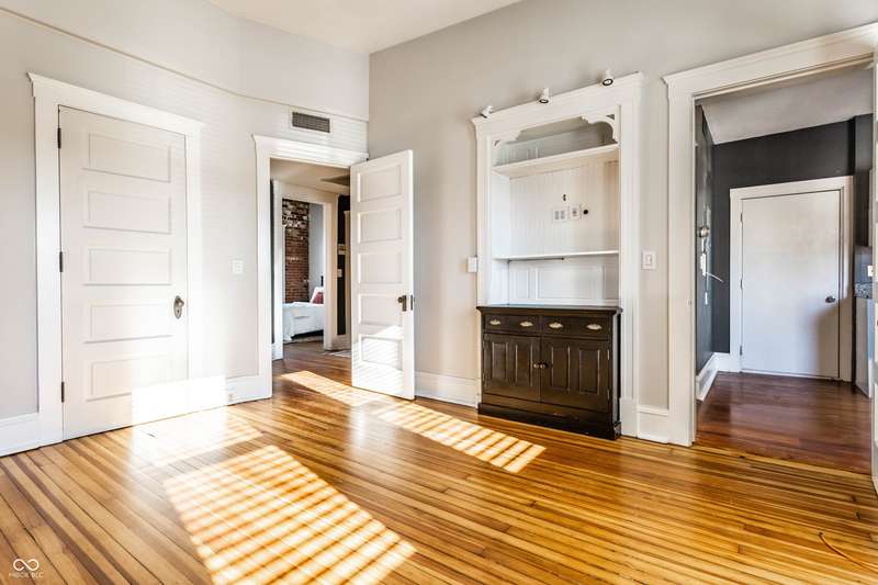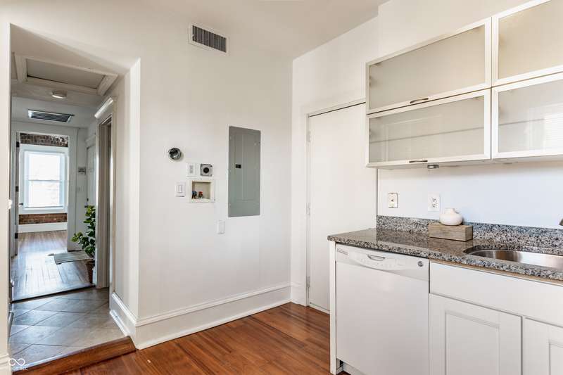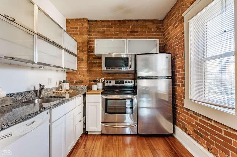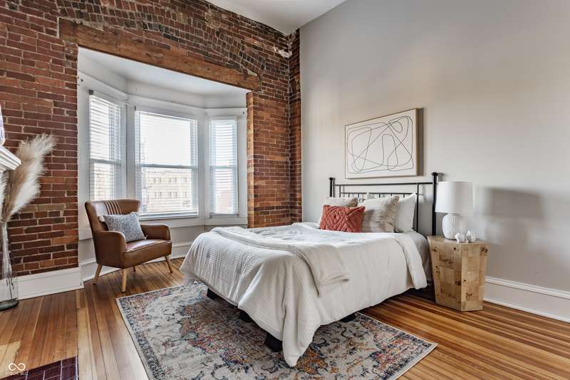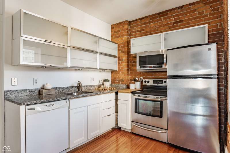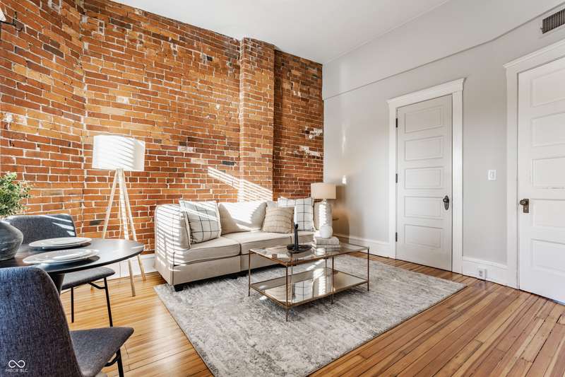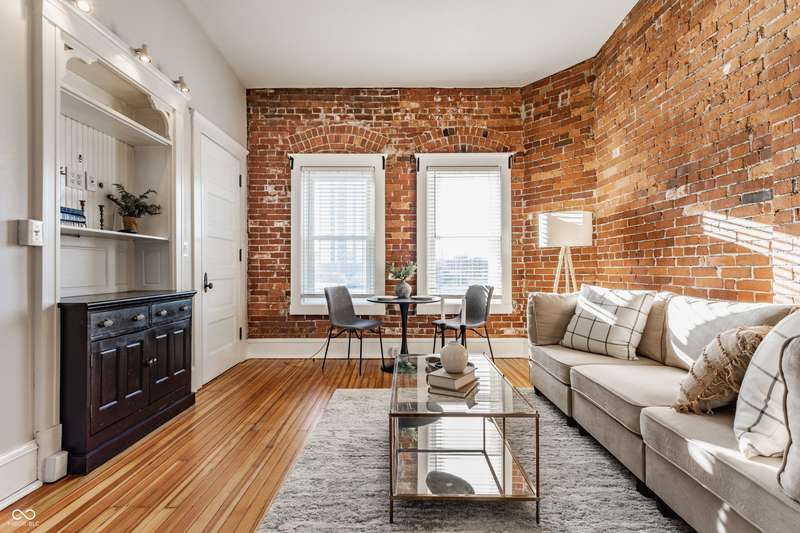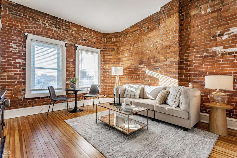 Gorgeous. Stunning. Unbelievable. This 2 bed, 1 bath condo is everything you've been searching for in the heart of Downtown Indianapolis. From the soaring ceilings to the exposed brick walls and gorgeous hardwood floors, every detail exudes charm and character. Step outside your windows and take in the stunning views of picture-perfect downtown Indy. A rare bonus? This is one of the only units in the building with in-unit laundry! The J.W. Wilson Building also features a secure entrance and showcases beautiful historic touches throughout. Plus, convenient parking options for lease are just steps away. Don't miss your chance to own a piece of downtown history with all the modern comforts you need!