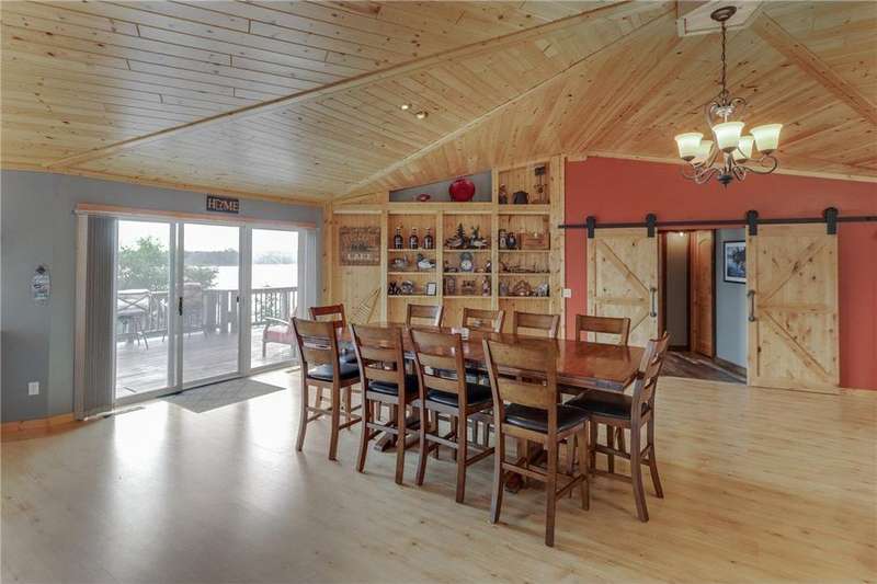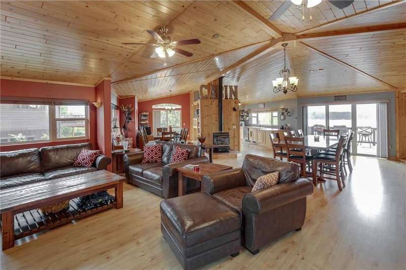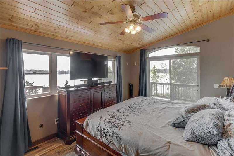 If an open floor plan with vaulted ceilings, breath taking views from the lakeside decks and patios are your thing, then this is the place for you! This 4 bedroom 4 bath home features 103 feet of southeasterly views of Big Pine Lake, a swim spa room with a 3/4 bath, a heated garage with a bonus upper level bunk room, all bedrooms walkout to either a deck or patio, a primary bedroom on the main floor with a private bath that has a jetted tub with heater, separate tiled shower, granite top vanity, and blue-tooth ceiling speakers. This home is absolutely loaded with amenities! There is a sauna room with shower and all it needs is the heating unit. This was a short-term rental last year. Rent it out when your not there and take advantage of the income possibilities! The bunk room above the garage has 3 additional beds for those extra quests.