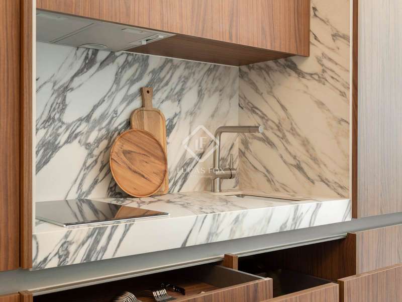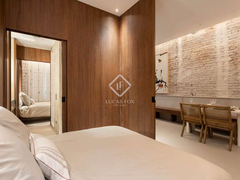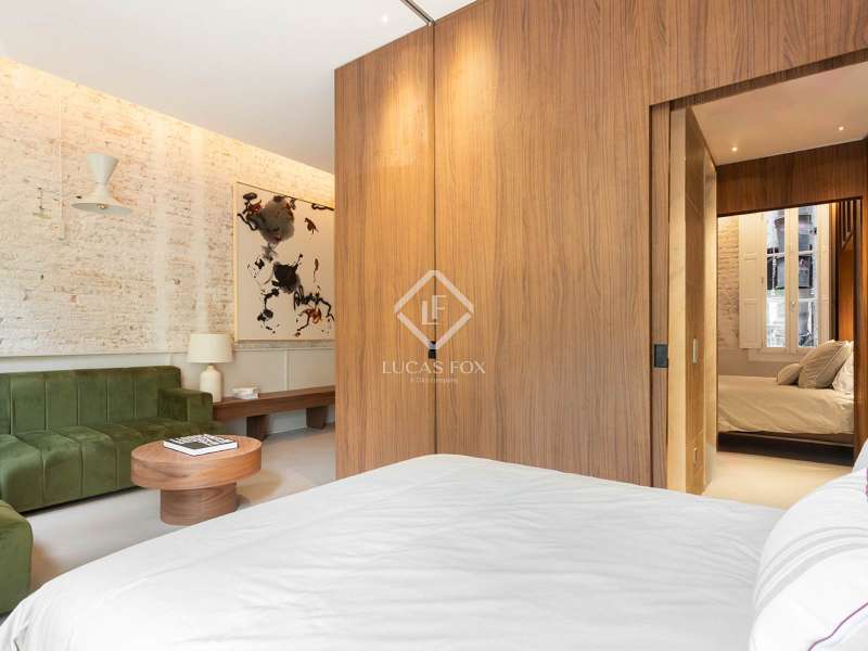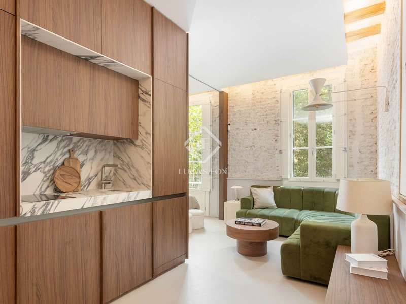 This development is located in the charming Sant Antoni neighbourhood of Barcelona's Eixample district. The classic style building dates back to 1900 and has been completely renovated, offering a lift and attractive communal areas. The communal areas of the building include a gym, parking spaces for bicycles, a wine cellar, a laundry room and a communal terrace with outdoor showers, a lounge and a social bar. The building consists of a basement level, a mezzanine and main floor level, 5 upper floors and a rooftop. Offering twelve apartments and two duplex loft properties, this development provides homes that are fully furnished, equipped and ready to move into. The kitchens come with fitted electrical appliances (dishwasher, oven, microwave oven, coffee maker and refrigerator), Zucchetti taps and porcelain countertop. This 2-bedroom property is on the ground floor (real height - first floor) and is the result of a clever design concept by which a single space may be transformed with a system of sliding panels. The beds can be concealed in closets during the day, and the kitchen and bathroom are at the centre of the home. Feel free to contact us for further information.