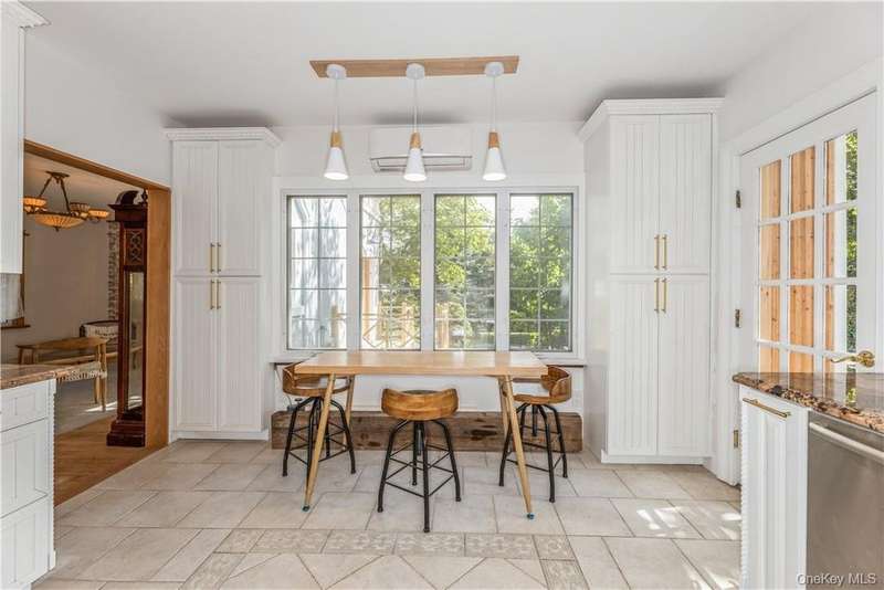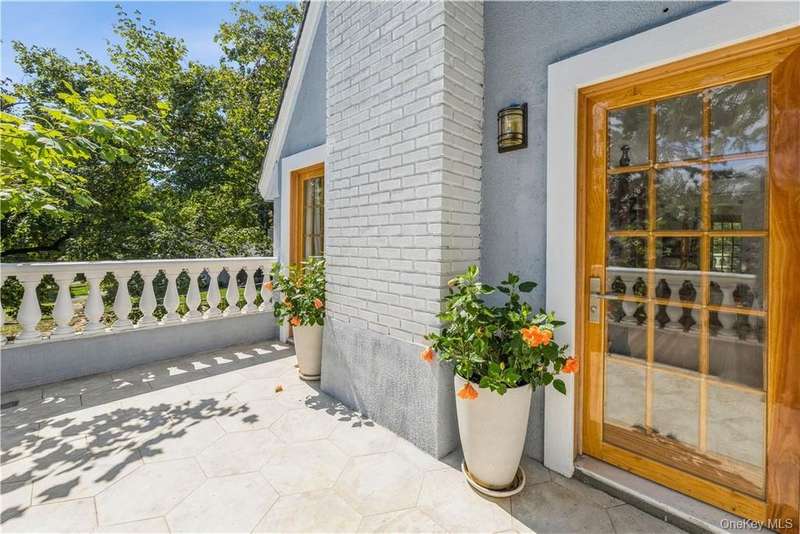 Spectacular, spacious, and sun-filled Tudor-style home featuring 4 bedrooms and 2.5 baths, set on a beautifully landscaped lot with a circular paver driveway in the award-winning Pearl River School District. This stately home combines classic architecture with contemporary updates, beginning with an impressive 9-foot entry door framed by glass side panels. Inside, gleaming hardwood floors and an open floor plan connect the banquet-sized dining/family room, with French doors to the deck, for an easy flow between indoor and outdoor living. The formal living room with gas fireplace, and a fully equipped eat-in kitchen, complete with stainless steel appliances, quartz countertops, and access to the backyard for summer BBQs, make entertaining a breeze. A stylish powder room and an abundance of custom cabinetry complete the main level. A striking stacked-stone wall and floating staircase lead to the second level, which offers four bedrooms, three with private balconies, and two full baths. The lower level provides ample storage and a convenient laundry area. Enjoy all that pedestrian-friendly Pearl River has to offer, including superb restaurants, shops, and an easy commute to Westchester, NYC, and New Jersey.