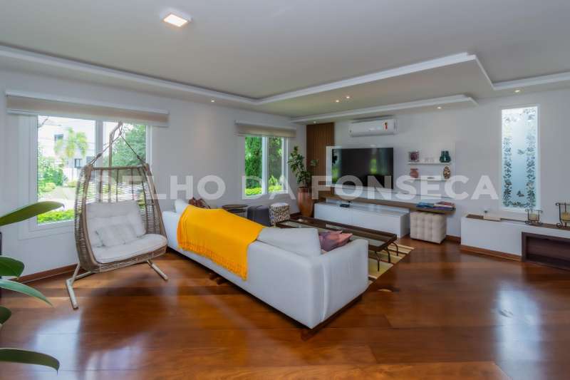 Casa no condomínio ALPHAVILLE 2, com 415m² área construída, 6 dormitório(s), 4 suíte(s), 6 vaga(s), 7 banheiro(s), piscina, escritório, depósito, ar condicionado, dep. de empregados, reformado (a), aquecedor solar.