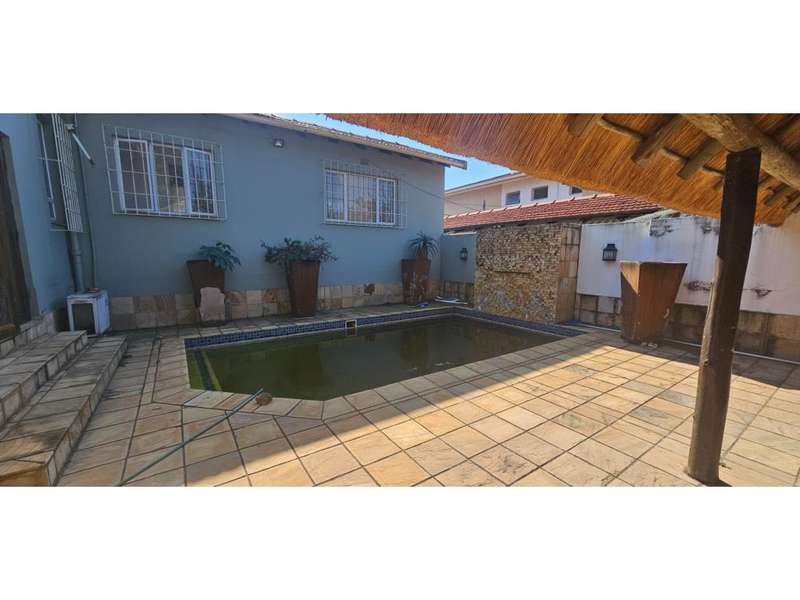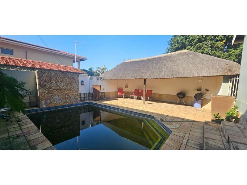 This charming 4 bedroom, 2 bathroom home with a guest loo offers the perfect blend of comfort, character, and convenience. Step into a spacious lounge that flows into sunken lounge, featuring wooden floors and tiles throughout, creating a warm and inviting atmosphere. The lounge opens out to a pool and Lapa on one side and a second undercover entertainment area with ample garden space on the other - perfect for family living and entertaining. The home also includes a single garage, an outbuilding, and a small storage room for added practicality. Ideally situated close to shops, school, and transport routes, this well-rounded property offers everything you need. A must-see in sought after Durban North! Call today to book a viewing.