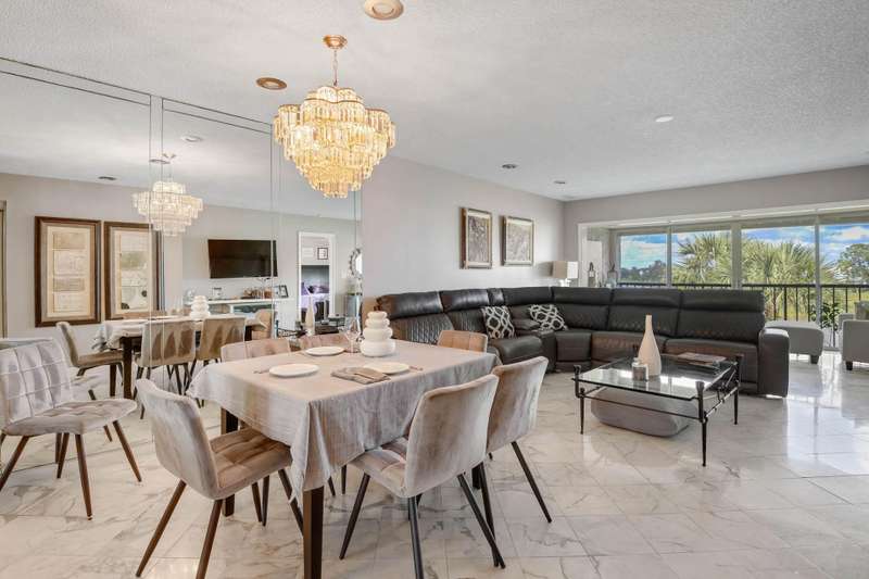 Enjoy stunning balcony views from this spacious 2-bedroom condo located in the desirable 55+ community of Fountains Country Club. This light and bright home offers comfortable living with a relaxing extended living space, perfect for morning coffee or evening sunsets. The Esedra Court section features a sparkling community pool close by. HOA fees include basic cable, basic internet, water, exterior pest control, exterior building insurance, and roof maintenance for added peace of mind. Optional club membership is available for those seeking resort-style amenities. Conveniently located near shopping, dining, and major roadways!