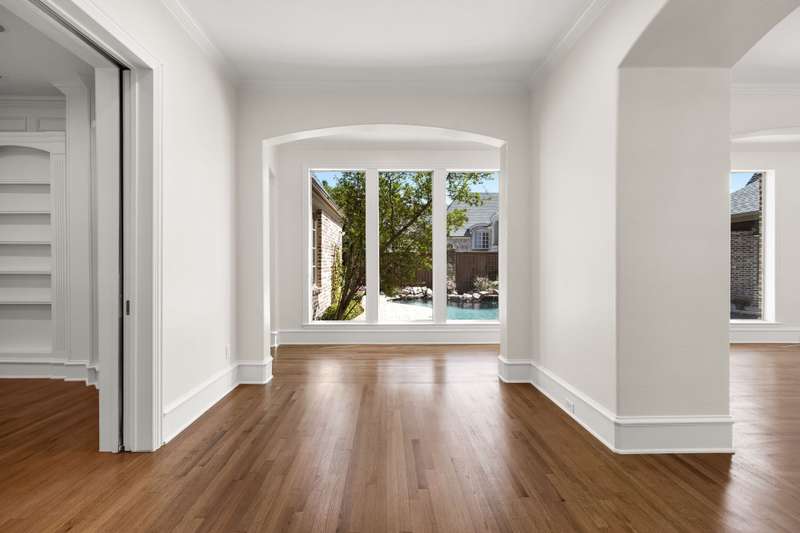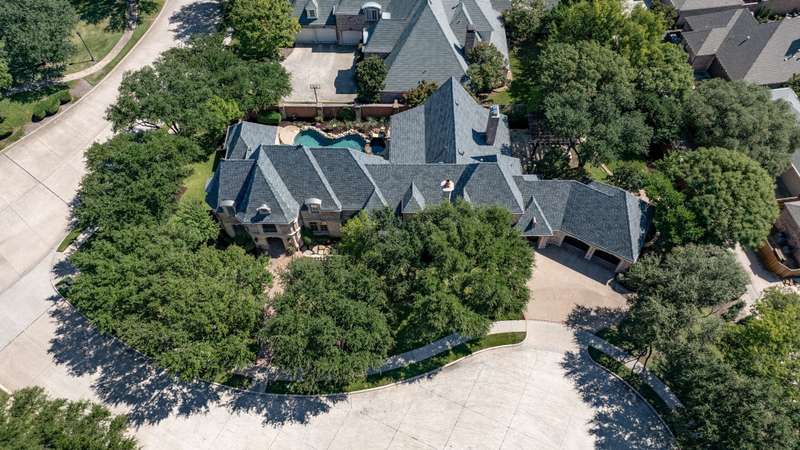 Nestled on a premier corner cul-de-sac lot spanning over half an acre, this extraordinary estate in the exclusive, gated Villages of Stonebriar Park combines timeless architecture, sophisticated updates, and resort-style amenities. The homes interiors are designed for both grand entertaining and comfortable living. A formal dining room with butlers pantry, icemaker, and modern chandelier provides the perfect setting for gatherings, while the handsome study boasts extensive built-ins and a concealed hidden room. A versatile bonus room offers flexibility for an exercise space, nursery, or private retreat. At the heart of the residence lies the expansive chefs kitchen, a showcase of style and function with white cabinetry, quartz countertops, a Sub-Zero refrigerator, a Dacor double oven & 6-burner gas cooktop, a generous island, and a wall of windows overlooking the pool. An intimate breakfast nook with a stone fireplace creates a warm and inviting atmosphere. The soaring vaulted ceilings and stunning stone fireplace in the living room anchor the space, flanked by windows that bathe the room in natural light. A wet bar and direct access to a private outdoor dining area enhance its entertaining appeal. The primary suite is a true sanctuary, offering a private balcony, dual vanities, a custom closet system, and a cedar closet. Additional features include a floored attic with potential for finish-out and laundry rooms on each floor. The lush grounds are designed for both relaxation and entertainment, with a covered patio, pergola, play yard, and outdoor kitchen featuring a built-in gas grill. The centerpiece is the resort-style pool with waterfall, spa, and sun-drenched lounge area, creating the ultimate private escape. Residents enjoy access to a tranquil community lake with fishing, with close proximity to The Star, The Shops at Legacy, and Stonebriar Country Club.