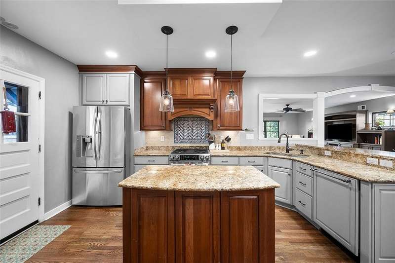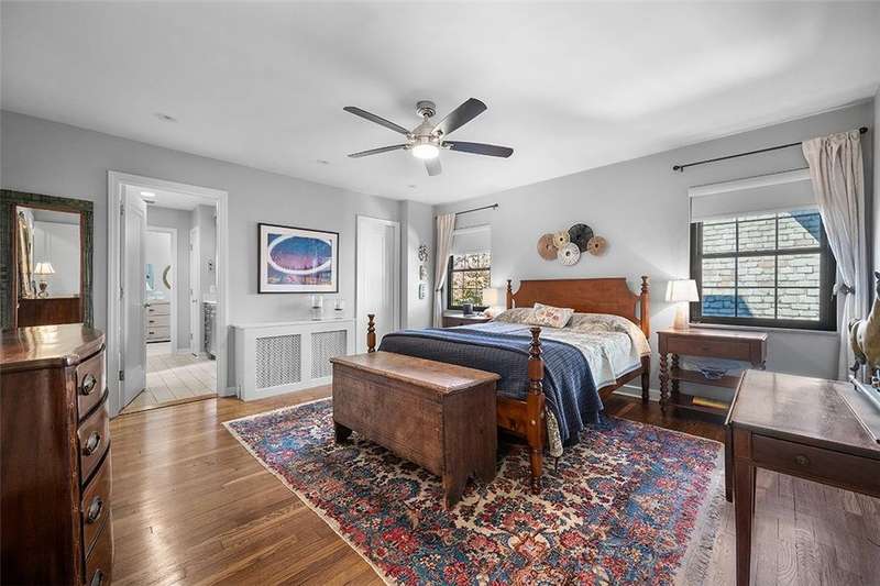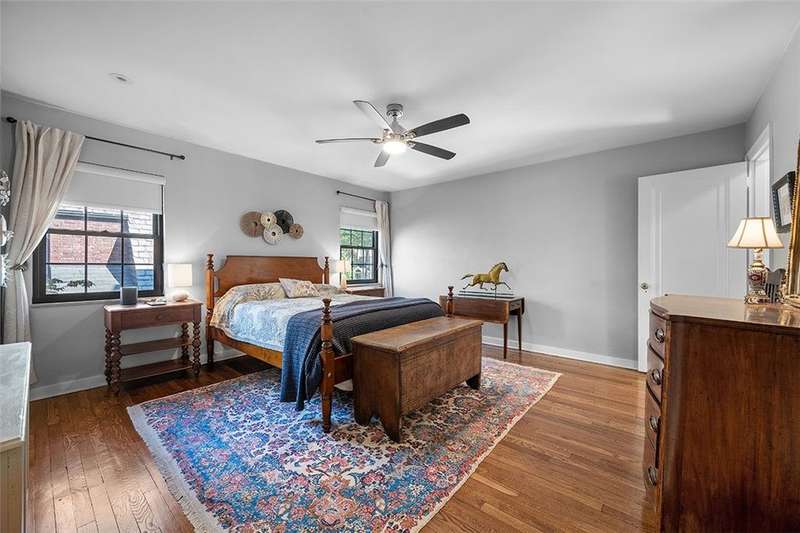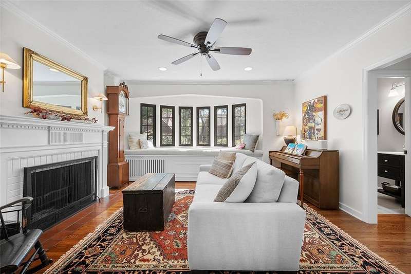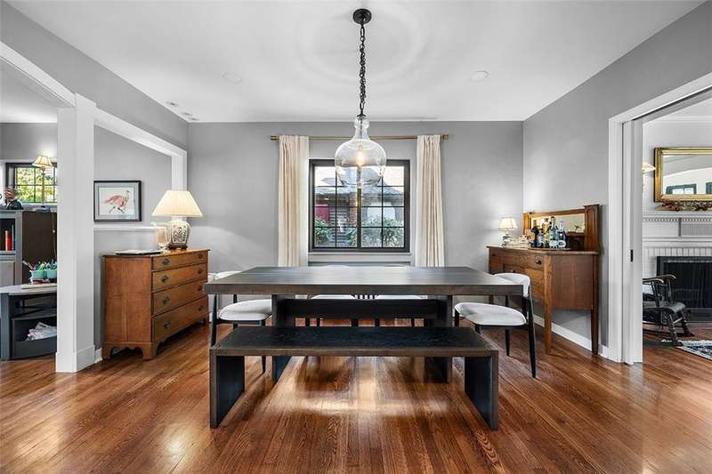 Charming brick Tudor sitting on a picturesque brick street offering 3 finished lvls of living space. Sun-filled rooms & timeless details include a 12' wdw seat tucked in a bowed LR wdw, HW that continue upstairs & wood-burning frpl. Pocket doors from LR lead to open concept DR & kit w/peninsula, isle & quaint corner desk- perfect for coffee or baking station. Sizeable family rm extends off the kit/DR highlighted by a huge triple window looking out to private, flat yard plus French door leading to 23x13 covered patio- ideal for outdoor entertaining. 3 comfortable 2nd lvl bedrms, including a primary ste w/updated en suite, 2 walk-in closets & 16x7 bonus space. Crisp white hall bath & sunny 12x6 den complete 2nd lvl w/landing leading to easily accessible 3rd floor w/bright & roomy 4th bedrm. Convenient powder rms on main & LL. Centrally located near schools, Uptown, shops & dining, this home combines character, comfort & convenience in one of the community's most desirable neighborhoods.