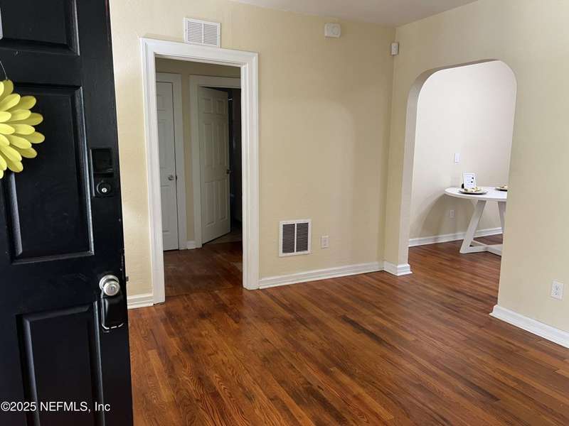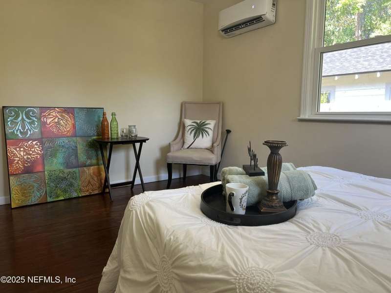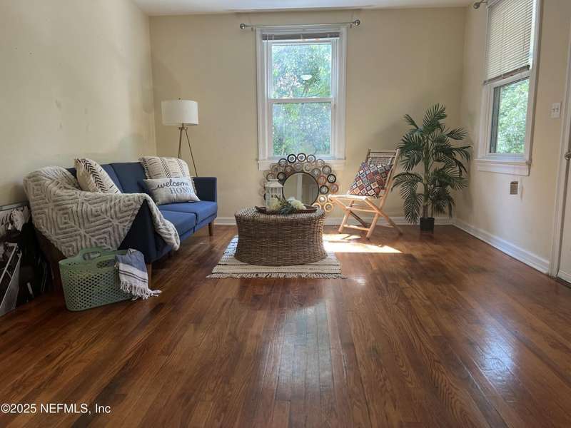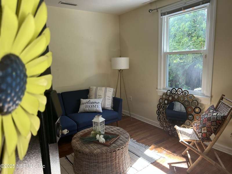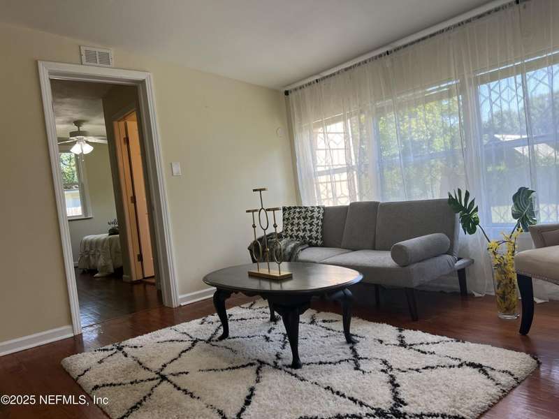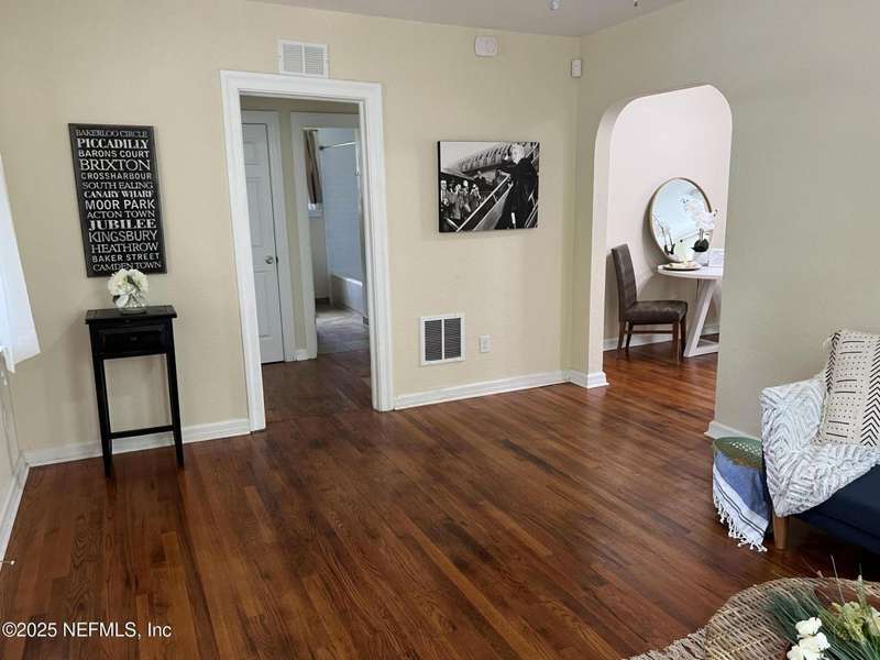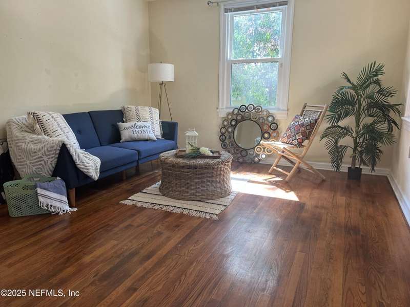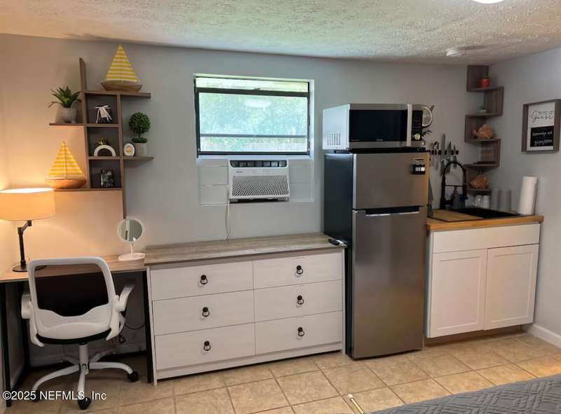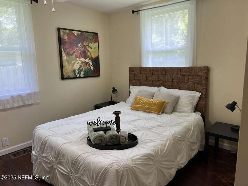 If you've been dreaming of jumping into the AirBnB venture, here's a wonderful opportunity to own an adorable 3/2 mid-century bungalow to live in with a detached 1/1 short-term Additional Dwelling Unit (ADU) rental, currently earning an average of $1200 per month at $98 per night. Staging and Pro photos coming June 26. But you can come now to see this gem with true wood floors - all refinished with the exception of two spare bedrooms - updated bathrooms and kitchen, indoor washer/dryer hookups, , built-in closet and a mini-split in the primary bedroom, big fenced backyard, a traditional driveway and additional circular driveway for guests, EV wiring for a charging station stays and the solar panels are owned and will be paid off at closing.