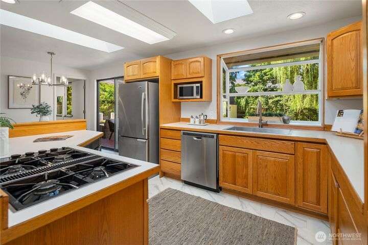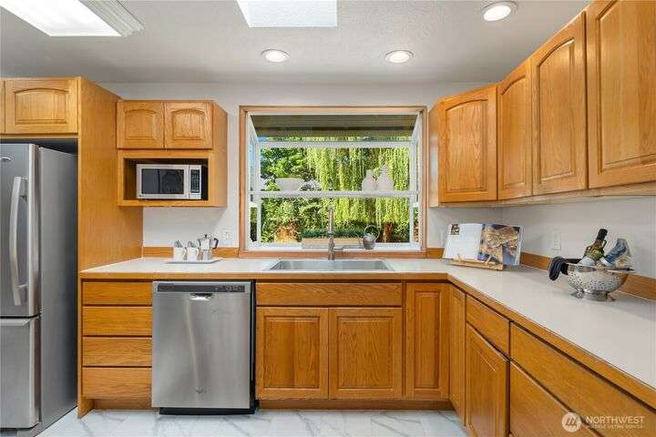 $10,000 Buyer Credit at Closing! Beautifully refreshed rambler tucked in a quiet cul-de-sac, offering a large fenced backyard & space for play & gardening. This 1,448 sq.ft. home features 3 bedrooms & media/game room. Kitchen boasts skylights & garden window overlooking back yard. Roof approximately 10 years old, vinyl double-pane windows, and fresh interior/exterior paint, this home is move-in ready. Enjoy year-round comfort w/ central A/C. Located near Alderwood Mall, dining, & shopping. The deck includes a covered section for all-season entertaining & BBQs. Expansive & private backyard w/ large storage building. Ideally located minutes from restaurants, shopping & Alderwood Mall. Exceptional value at this price!