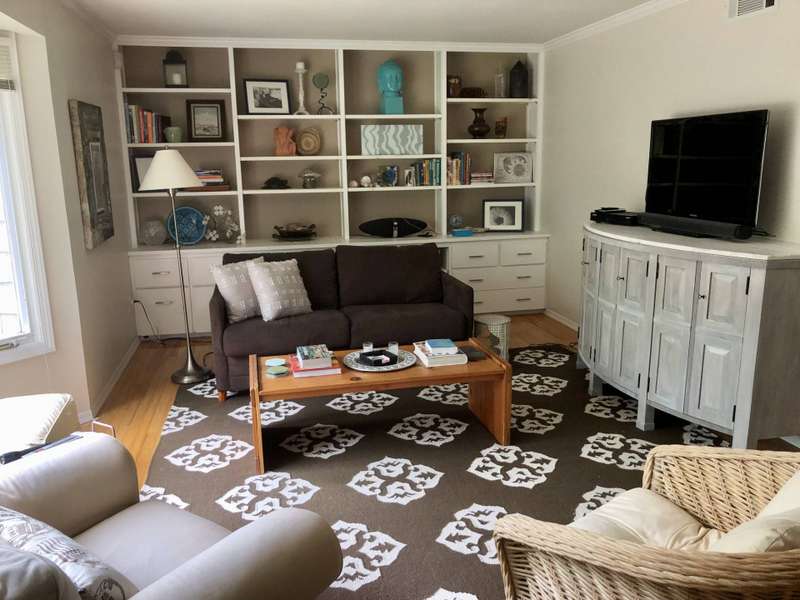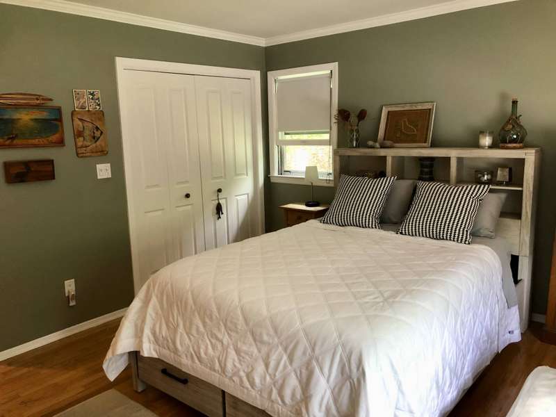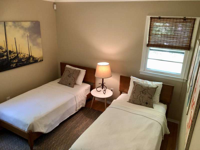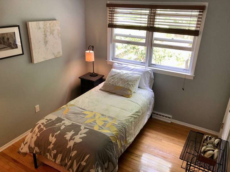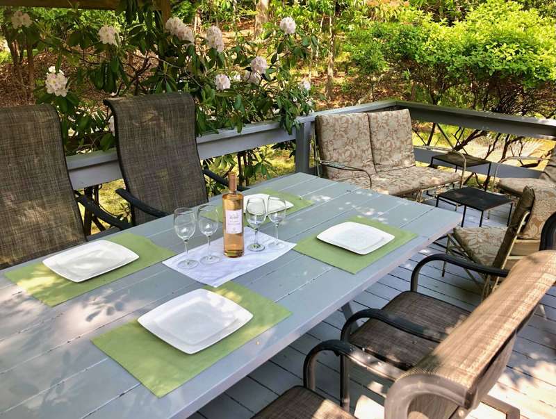 Rental Reg#: 24-524. This cozy 3 bdrm/2.5 bath Barnes Landing cottage is nestled in a quiet and private setting and is a short walk to the lovely Barnes Landing bay beach. The home features a breezy floor plan with a combined living room and a dining alcove. Sliders to the back deck make for easy outdoor lounging and dining. There's a spacious, well-stocked separate kitchen, a laundry room, as well as an over-sized outdoor & open-to-the sky shower for cooling off after a summer's day. This rental includes a three person kayak ready for your enjoyment at Barnes Landing Beach (locked storage at the beach for your easy access), beach chairs & umbrella, tennis racquets & balls (public tennis courts a 5 minute drive), and boogie boards. Everything you need for a fun summer in the Hamptons!