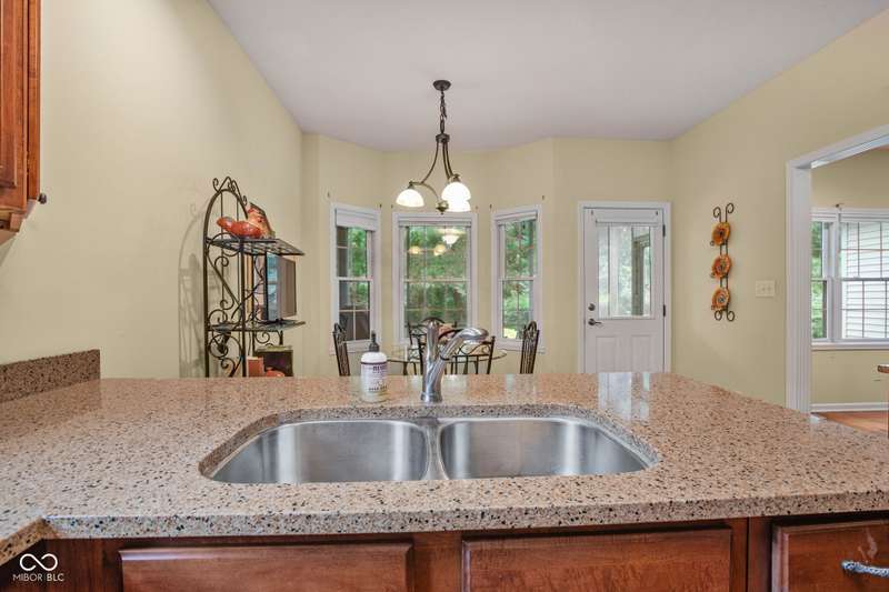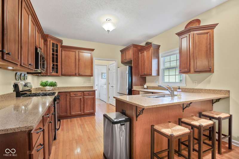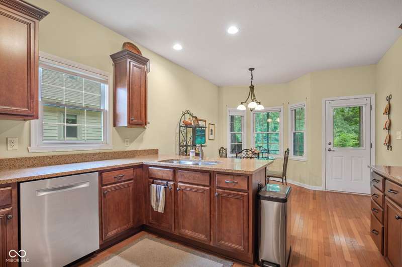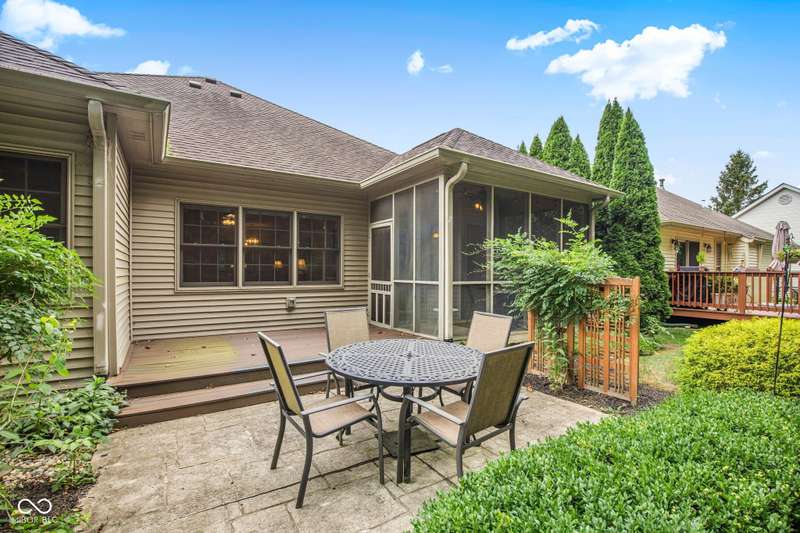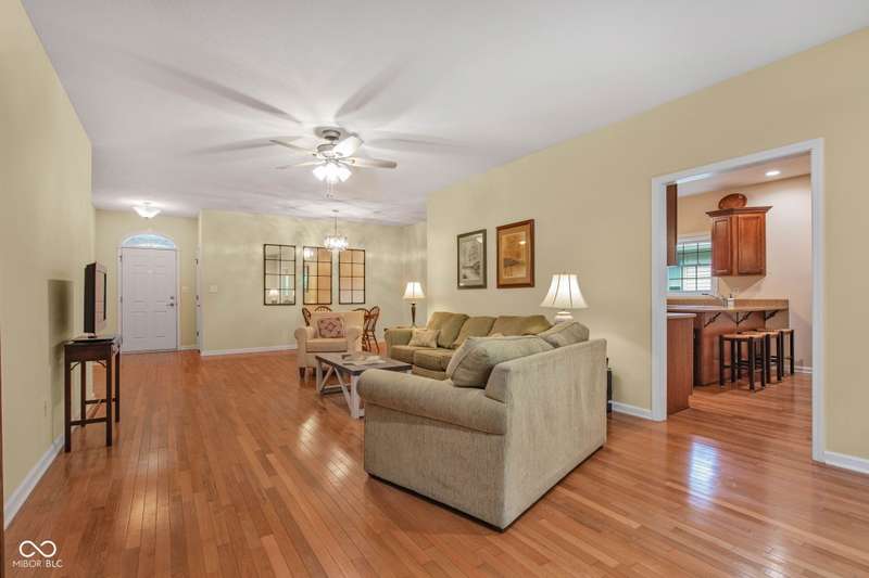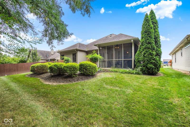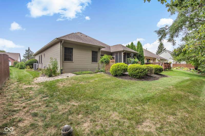 Sits on a wooded lot on cult sac. Ranch home with wood flooring. Updated kitchen and screened porch located in desirable Summer Haven addition of The Havens. With a basement perfect for many uses theater, exercise room, crafting room, abundance storage. Perfect for families or empty nesters comes with access to a community pool and great New Palestine schools.