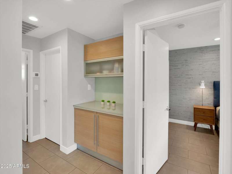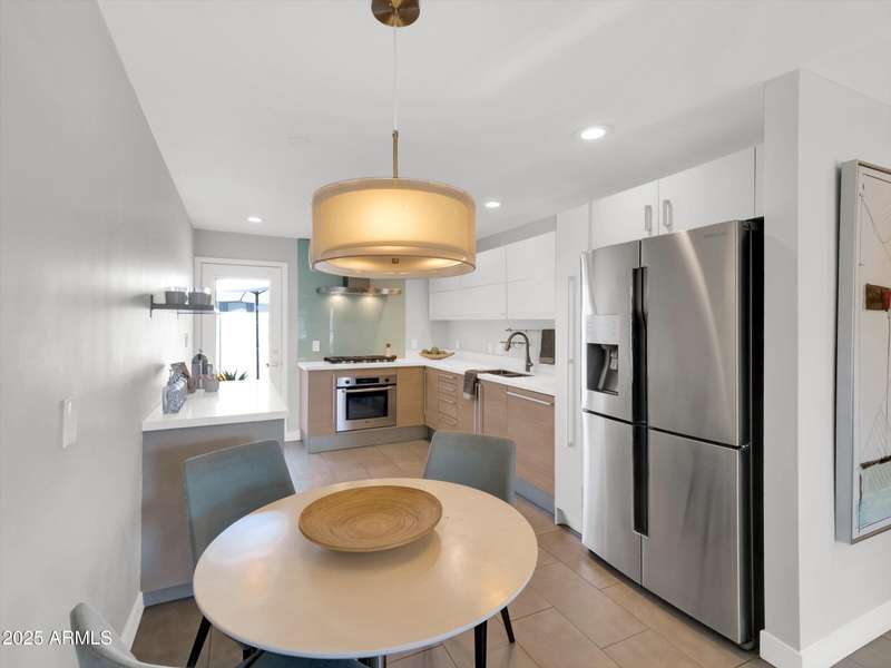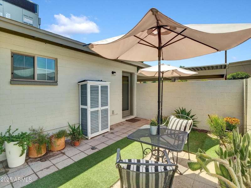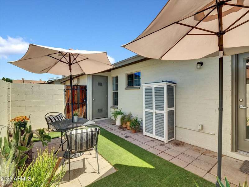 Tucked inside a stylish, gated mid-century community, this sophisticated 2-bedroom end unit condo offers the perfect lock-and-leave lifestyle in one of Phoenix's most desirable neighborhoods. Just minutes from world-class dining, shopping, resorts, and hiking trails, it's a rare find with modern upgrades and timeless design. Inside, you'll find signature Pedini Italian cabinetry, a stainless steel gas range, a full size French door refrigerator/freezer, quartz countertops, a new AC unit, and a full laundry room with side-by-side washer and dryer—features not often found at this price point. Sunlight fills the space, creating a bright, inviting atmosphere that blends comfort and style. Enjoy community amenities just steps from your door, including a heated pool, gym, and clubhouse. The HOA also covers all roof repairs and replacement for a buyer's peace of mind. Outdoor living shines with a lush front patio perfect for morning coffee and a private back patio retreat for unwinding at the end of the day. All this, plus walkability to Granada Park, nearby shops and restaurants, and unbeatable proximity to the 51, downtown, and the Biltmore. Don't miss this stylish and sleek opportunity to call it your home!