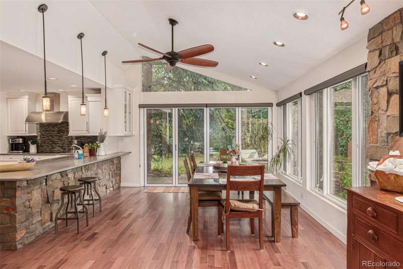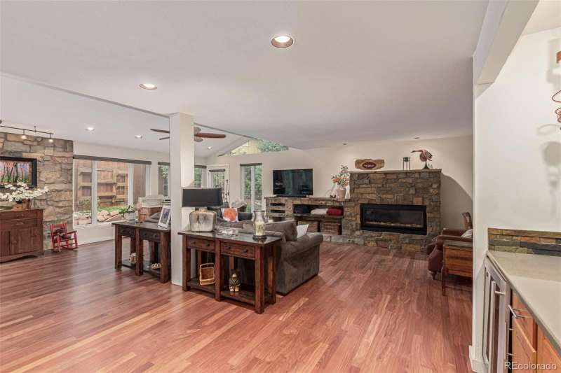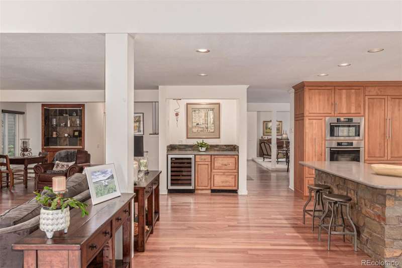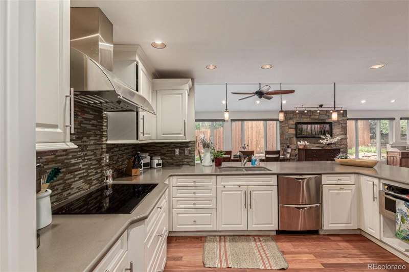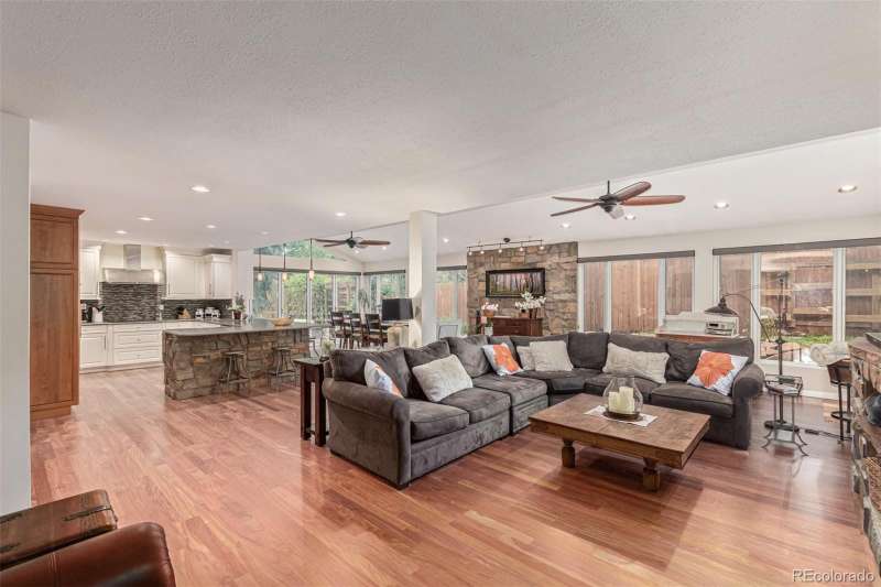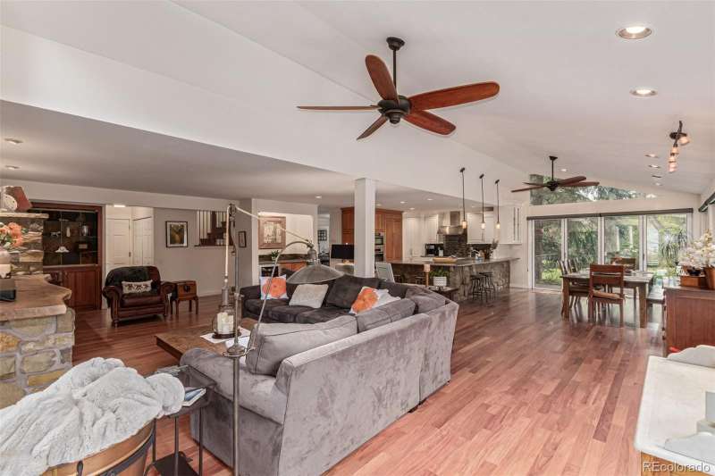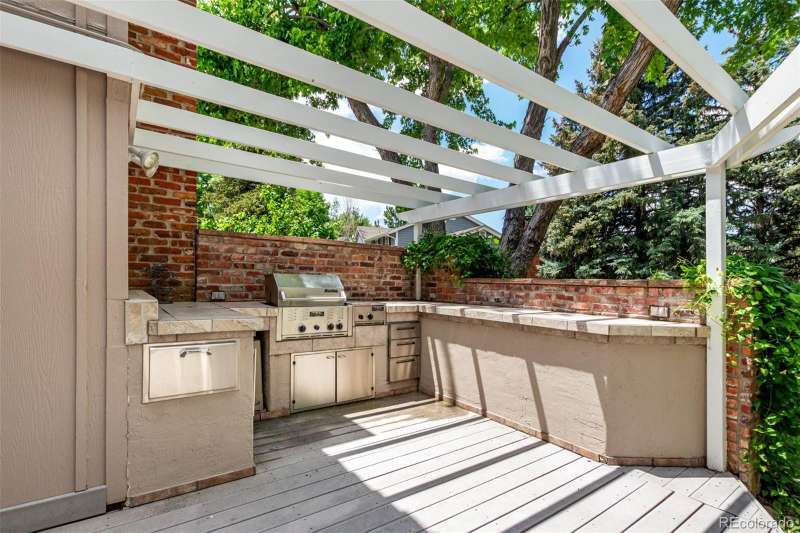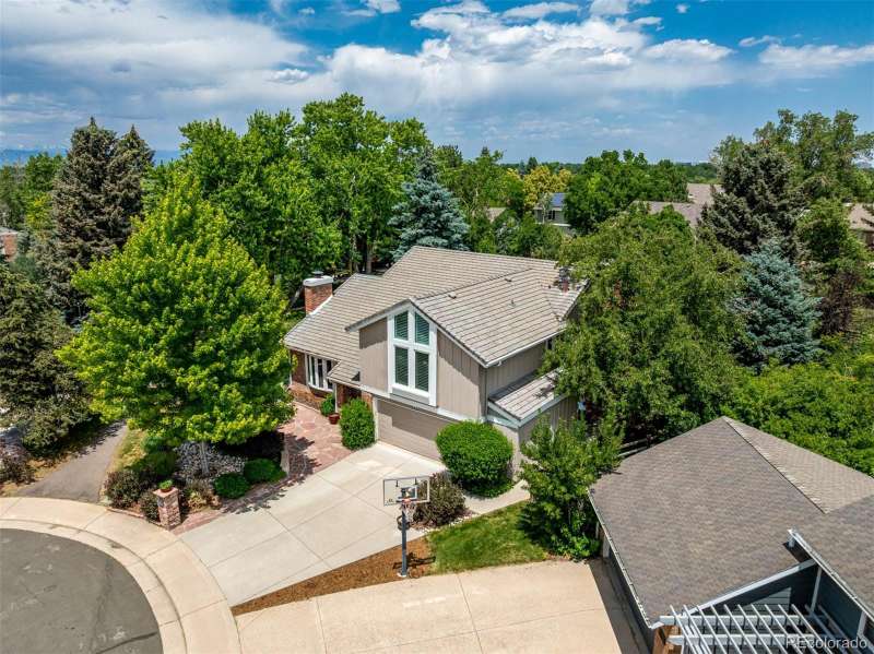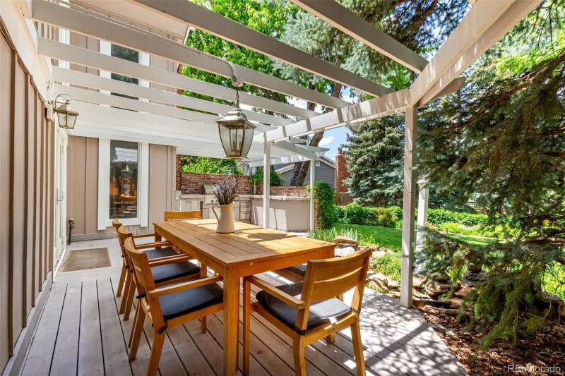 Presenting a rare opportunity to own a distinguished residence in coveted Willow Creek available for the first time in 45 years. Located within the esteemed Cherry Creek school district, this home is ideally positioned at the end of a quiet cul-de-sac, adjacent to a walking trail that leads directly to the neighborhood elementary school. Residents enjoy access to multiple parks, swimming pools, and scenic trails, enhancing the communitys appeal. This four-bedroom, three-and-a-half-bathroom home has been thoughtfully updated and expanded to accommodate modern living. An addition to the back of the house has transformed the kitchen and main family living area into a spacious, open-concept environment, featuring Santos mahogany floors, vaulted ceilings, one of 3 fireplaces, and expansive windows that frame the backyard. The kitchen has been tastefully remodeled with premium finishes, offering both functionality and style that will impress even the most discerning chef. A four-panel NaNa Wall sliding door seamlessly connects the interior to a backyard oasis, complete with a lush lawn, built-in gas firepit, fully equipped outdoor kitchen, expansive deck for dining and entertaining, a water feature, and a flagstone patio ideal for enjoying Colorados serene summer evenings. The front yard has been landscaped to require minimal upkeep and includes a flagstone sitting area. All four bedrooms are located on the upper level, including a generously sized primary suite with a walk-in closet and the ensuite bath that offers a blank canvas for creating a truly luxurious retreat. The upstairs loft overlooks the formal living room and features a custom-built-in office, offering a refined and quiet workspace. The formal living room is carpeted and offers the 2nd of the homes 3 fireplaces. The finished basement adds versatility with an additional living area, full bath, fireplace, storage room and a bonus room suitable for a home office, gym, or guest accommodations.