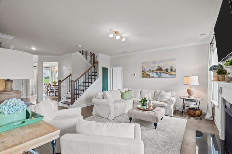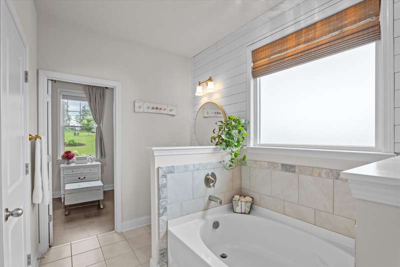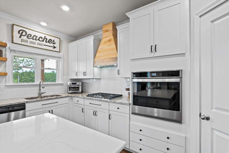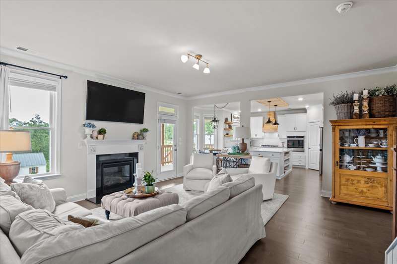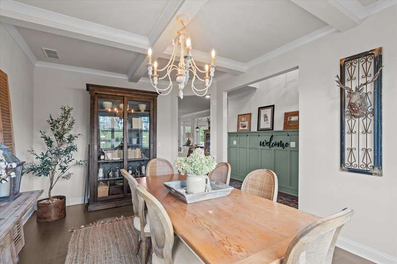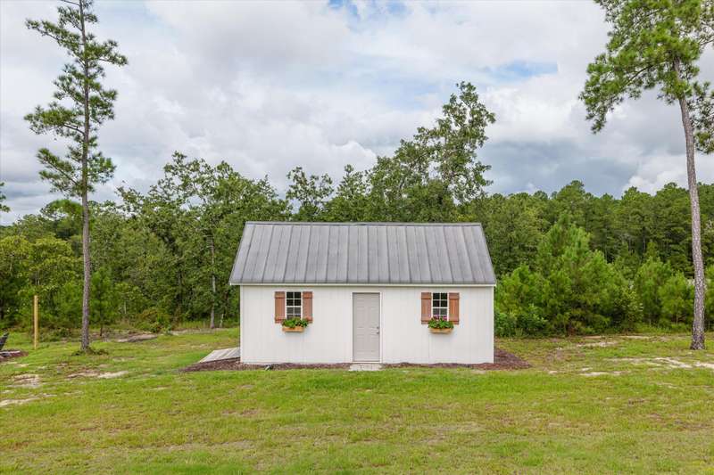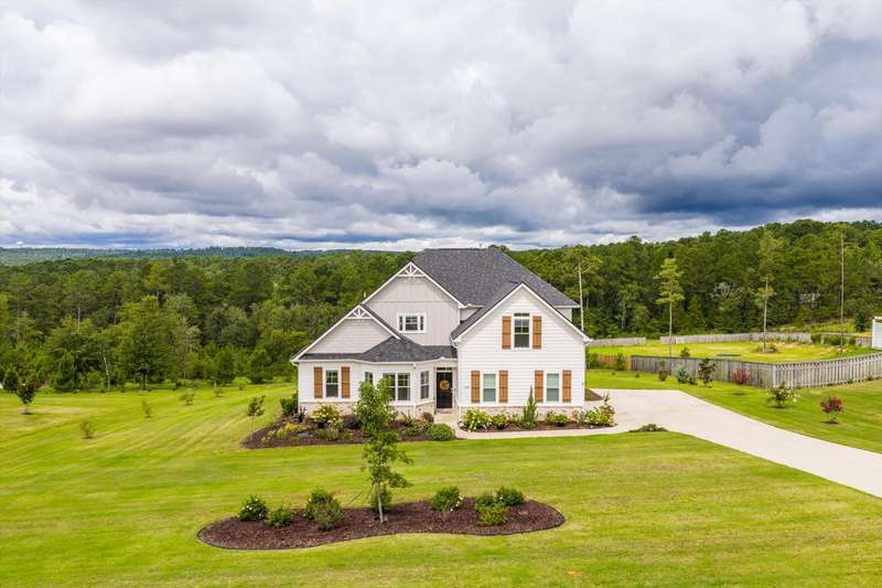 Discover the perfect blend of space, style, and convenience with this stunning 4-bedroom, 3.5-bath home set on 2 acres in North Augusta—just minutes from I-20, shopping, and dining. Truly move-in ready, this home welcomes you with a lovely foyer accented by board and batten wainscoting that opens to the formal dining room, complete with bay windows and a coffered ceiling. The spacious great room features a gas fireplace, while the chef's kitchen offers stainless steel appliances, a gas cooktop, large island, decorative wood hood, corner pantry, and a sunny breakfast area with bay window overlooking the landscaped backyard. A half bath with beadboard trim and a large laundry room with utility sink and cabinetry add convenience. The owner's suite is located on the main floor, featuring a peaceful sitting area with backyard views, a spa-like bathroom with dual vanity framed by shiplap, walk-in shower, tile flooring, and a spacious walk-in closet. 9' ceilings on the main floor add to feeling of light and spacious living spaces. Hardwood floors flow throughout the main level, with hardwood stairs leading up to a versatile loft—ideal for an office, gaming area, or library. Upstairs, you'll find three additional bedrooms, one with a private bath and the others connected by a Jack and Jill bathroom. Wide hallways upstairs add to the sense of openness. Thoughtful details are found throughout this home, from the trim work and mirrors to the lighting fixtures. Outdoor living is just as inviting, with a covered back patio featuring pull-down shades, a fire pit area with lighting, and a large, fully irrigated yard. The property also includes an attractive storage shed designed to match the home. Enjoy the beauty and privacy of acreage while still being close to all the conveniences of North Augusta.