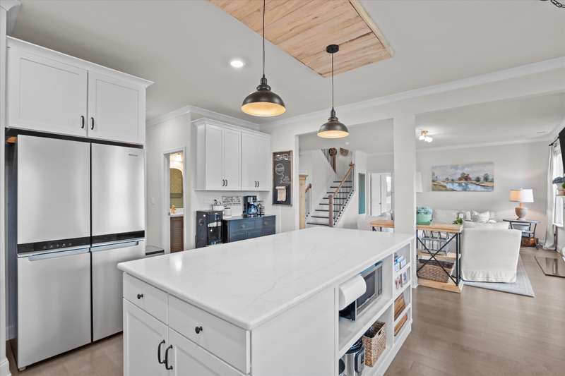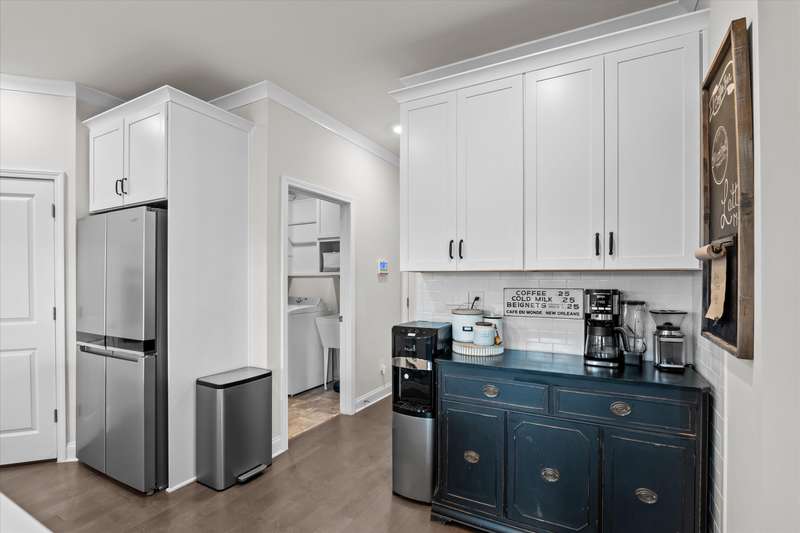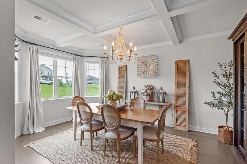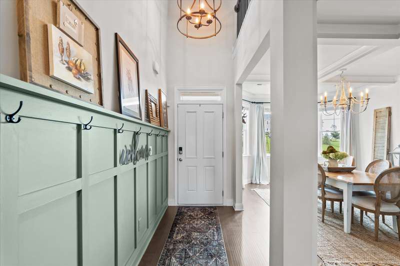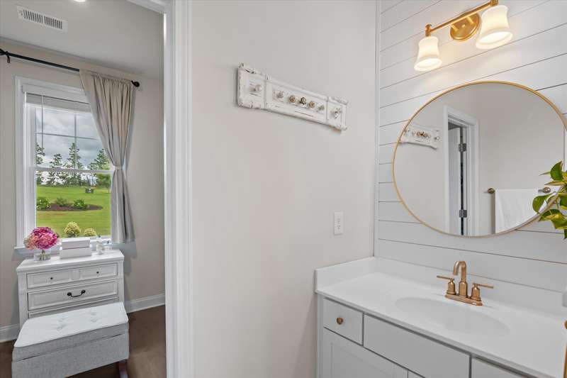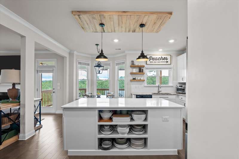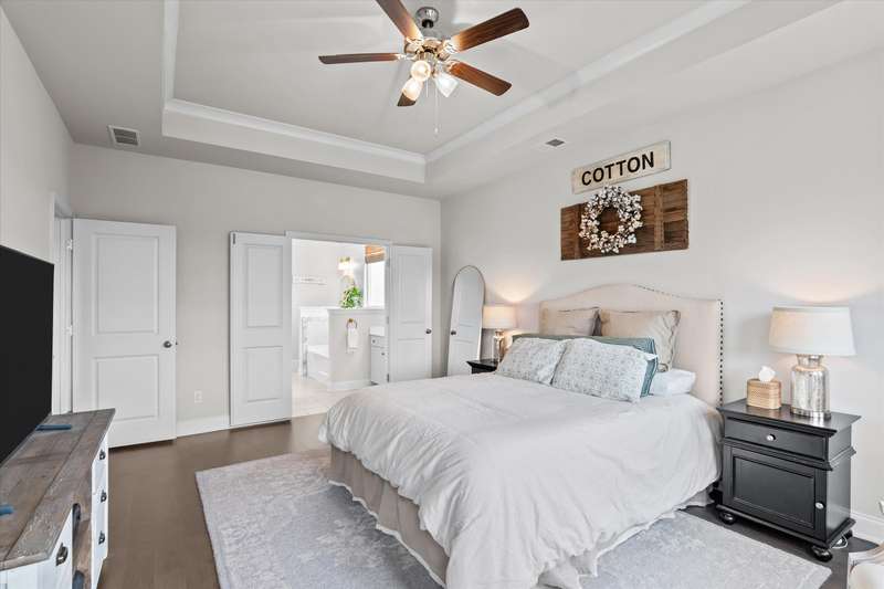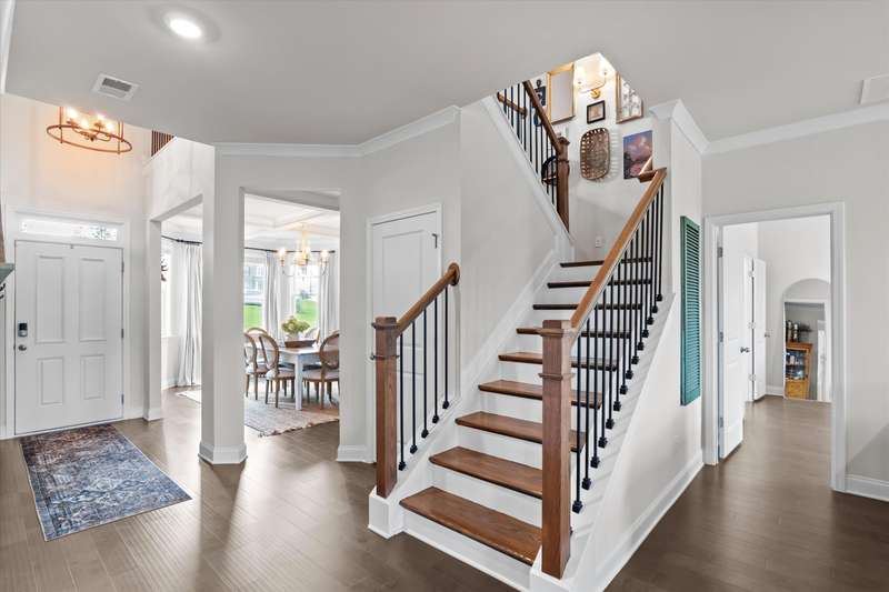 Discover the perfect blend of space, style, and convenience with this stunning 4-bedroom, 3.5-bath home set on 2 acres in North Augusta—just minutes from I-20, shopping, and dining. Truly move-in ready, this home welcomes you with a lovely foyer accented by board and batten wainscoting that opens to the formal dining room, complete with bay windows and a coffered ceiling. The spacious great room features a gas fireplace, while the chef's kitchen offers stainless steel appliances, a gas cooktop, large island, decorative wood hood, corner pantry, and a sunny breakfast area with bay window overlooking the landscaped backyard. A half bath with beadboard trim and a large laundry room with utility sink and cabinetry add convenience. The owner's suite is located on the main floor, featuring a peaceful sitting area with backyard views, a spa-like bathroom with dual vanity framed by shiplap, walk-in shower, tile flooring, and a spacious walk-in closet. 9' ceilings on the main floor add to feeling of light and spacious living spaces. Hardwood floors flow throughout the main level, with hardwood stairs leading up to a versatile loft—ideal for an office, gaming area, or library. Upstairs, you'll find three additional bedrooms, one with a private bath and the others connected by a Jack and Jill bathroom. Wide hallways upstairs add to the sense of openness. Thoughtful details are found throughout this home, from the trim work and mirrors to the lighting fixtures. Outdoor living is just as inviting, with a covered back patio featuring pull-down shades, a fire pit area with lighting, and a large, fully irrigated yard. The property also includes an attractive storage shed designed to match the home. Enjoy the beauty and privacy of acreage while still being close to all the conveniences of North Augusta.