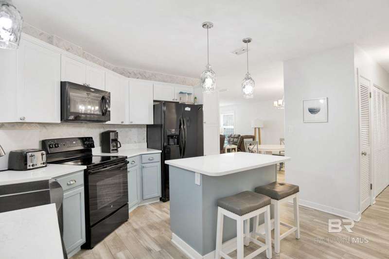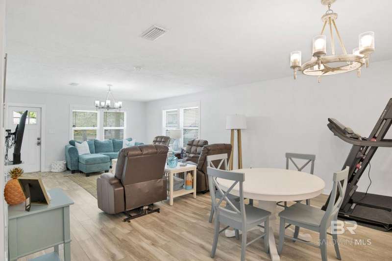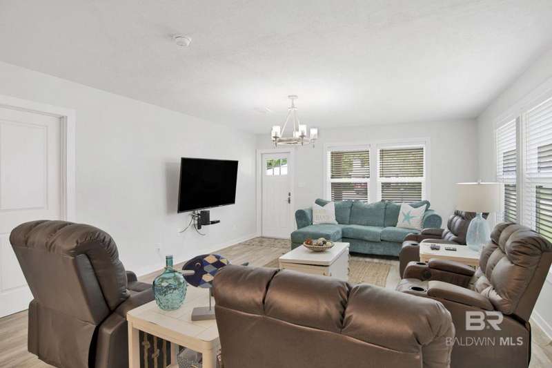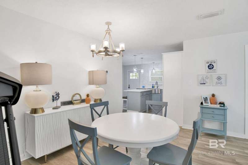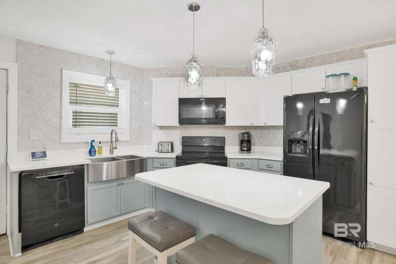 Elegantly Renovated Home in Palmetto Woods ? No HOA | Gulf Shores, AL Located in the well-established Palmetto Woods subdivision, this fully renovated 3-bedroom, 2-bathroom home combines quality craftsmanship with modern functionality?just 2.5 miles from the Gulf Shores beaches and free from HOA restrictions. Comprehensively updated in 2020, the property showcases high-end finishes throughout, including luxury flooring, custom cabinetry, quartz countertops, designer lighting fixtures, and new interior and closet doors. The kitchen features modern appliances, while key infrastructure updates include a new HVAC system, updated ductwork, tankless water heater, and hurricane-rated windows, promoting comfort, safety, and efficiency. The backyard offers a partially fenced outdoor space with professional grading and French drains, providing versatility for outdoor use. The property experienced no flooding during Hurricane Sally, highlighting its thoughtful construction and resilience. Conveniently situated near schools, retail centers, dining establishments, and a public golf course, this move-in-ready home presents an outstanding opportunity in a sought after coastal location?with no HOA fees. Buyer to verify all information during due diligence.