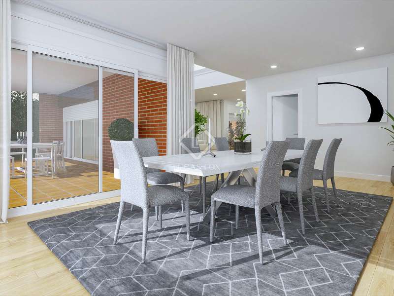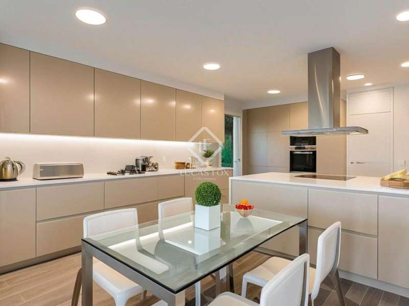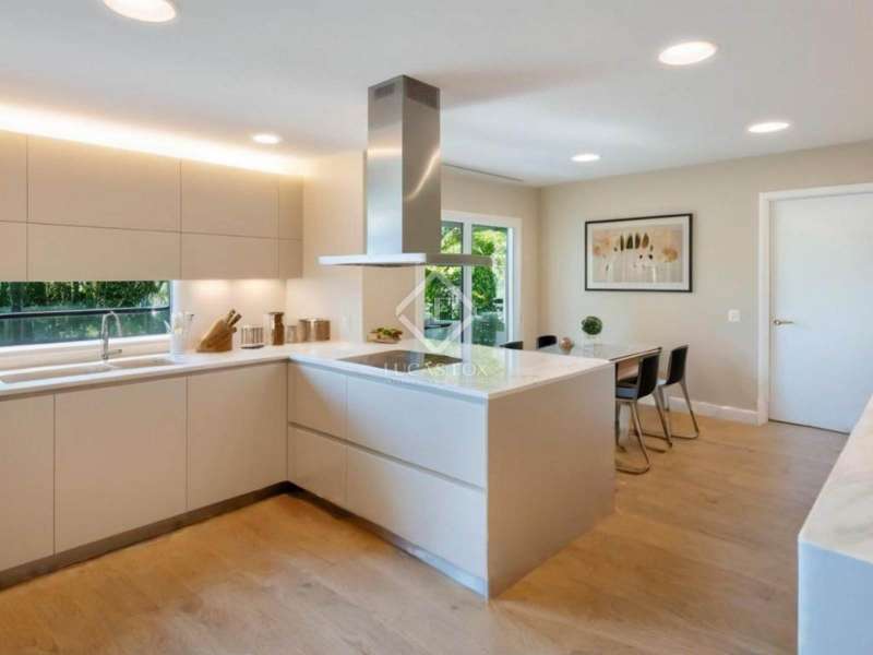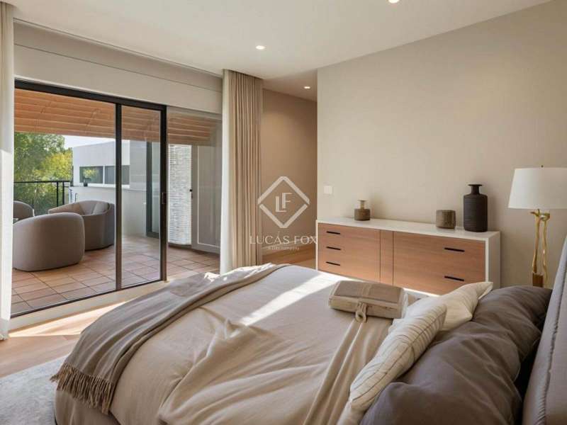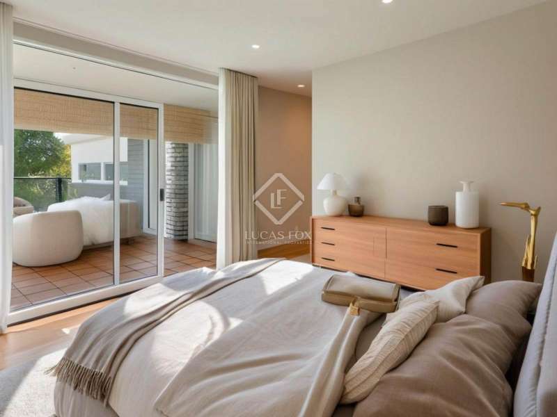 This three-story property, serviced by an elevator, offers a modern and spacious design, ideal for comfortable and elegant living. On the main floor , we find the day area, with a generously sized living room that connects to the dining room via a large terrace offering panoramic views. The fully equipped kitchen features a peninsula and an office space, ideal for informal meals. Additionally, on this floor, there is a double guest bedroom with an private bathroom and its own dressing room, as well as a laundry room room. On the upper floor , there are three bedrooms. The master bedroom has a large dressing room and access to a private terrace with views. The other two double bedrooms share a bathroom. This floor also features a living room with access to the garden and pool, providing direct access to the property's outdoor areas . The lower floor of the property is designed to offer maximum functionality and comfort. This floor houses a garage with capacity for five or six cars. There is also a gym space with a shower and changing room. There is also a machine room, ideal for storing equipment. There is also a wine cellar and additional storage space, while the multipurpose room with its own access is perfect for adapting to various needs, such as a teleworking office. This lower floor , with its combination of storage, wellness, and work areas , perfectly complements the other areas of the property. This well-designed layout, packed with exclusive details, makes this property an ideal home for those seeking comfort, privacy, and a sophisticated lifestyle.