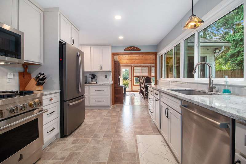 Quality built Mid Century home features a newer kitchen with upscale appliances, including stone & pewabic tile, a beautiful sunroom which can be used as a familyroom or formal dining room, and a list of updates including newer windows, roof and much more. Gorgeous 1/3 of an acre lot has room for gardening & recreation. In the heart of the city, you can hop a bus easily, or walk to Trader Joes, Bearclaw coffee, Fraziers Pub & gift shops. A short bike ride to the Big House or as a longer walk, it is perfect for the sports enthusiast. The finished w/o basement sports a retro bar / rec room as well as a non conforming guest room, 1/2 bathroom & laundry. Large deck with awning and fenced in area are perfect for outdoor entertaining pets and more! Home Energy Report download @stream.a2.gov