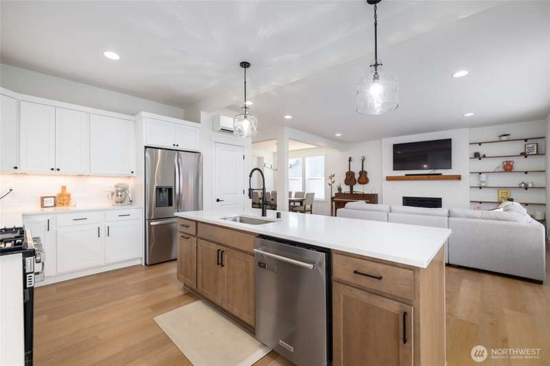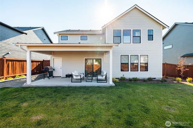 Welcome to Bucko Estates a new legacy community! This almost new 2-story home has 4 bed/2.25ba + Bonus room w/vaulted ceilings & a modern farmhouse vibe. The main level has a great room w/gas fireplace, built-ins & LVP flooring. A versatile main level office/ bedroom has a great view. The kitchen has 36" upper Alabaster cabinets, a gas range, an upgraded dishwasher, refrigerator, pantry & Ember on Maple colored island w/quartz countertops. Upstairs features the primary bedroom w/vaulted ceilings, large walk-in closet & ensuite bathroom w/tile shower, tile floor & double sinks. Enjoy a covered patio, a fully landscaped yard w/garden space & a fenced backyard. There is a spacious two-car garage w/an additional tandem bay.