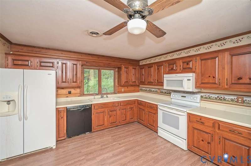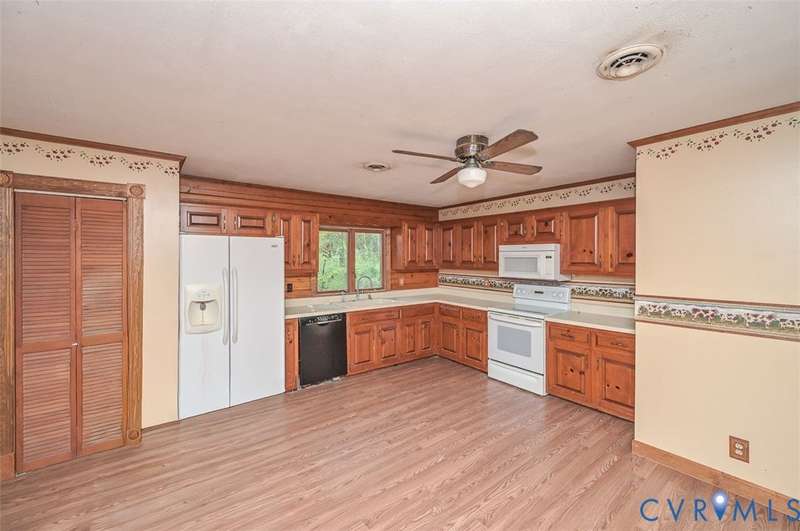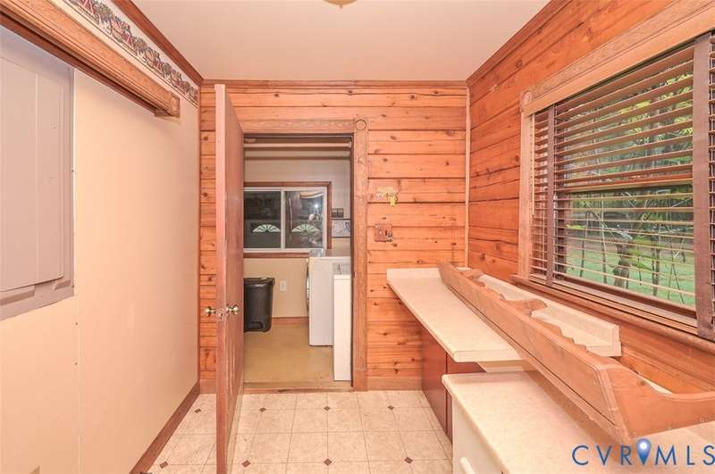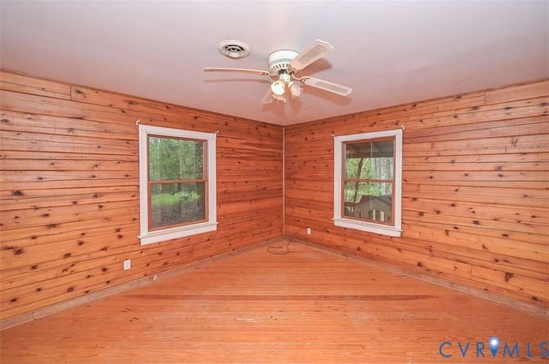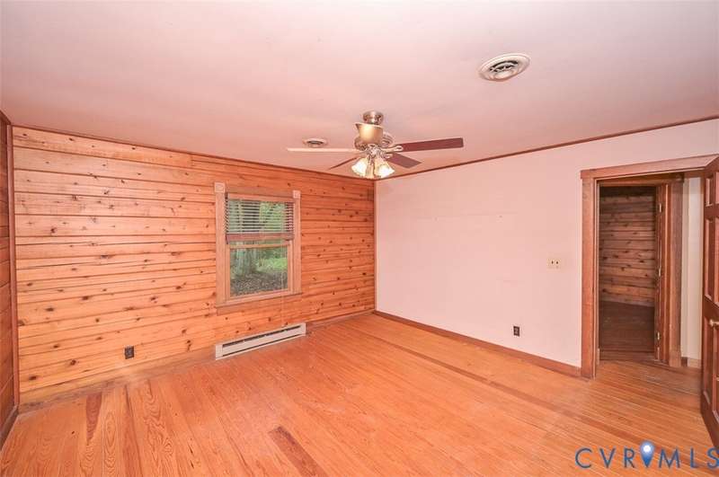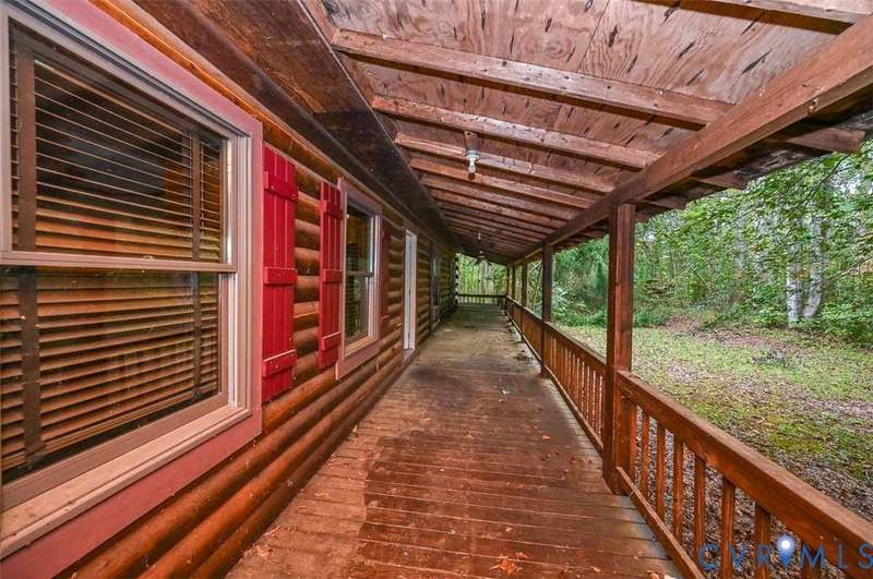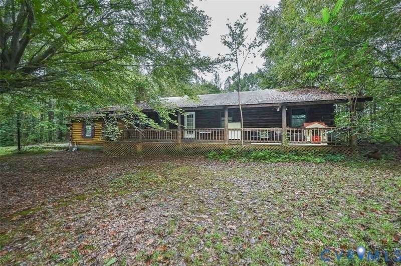 Here's your chance to own a Log cabin on 15 wooded, private acres in New Kent County!! This home features 3 spacious bedroom and 2 Full Baths!! The Family Room features a brick wood burning fireplace! Pine wood floors throughout the home! Large Kitchen with lots of cabinets! There is an attached 2 car garage with extra space for a workbench area! There is a detached 2 bay workshop/garage and several out buildings for storage! This home needs some TLC but will make someone a beautiful cabin located only 5 minutes to I-64 or Starbucks at Bottoms Bridge!! Priced below County assessment!!