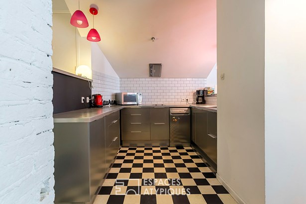 Three steps lead down to a second large living room with a fitted kitchen opening onto a lounge and dining area that coexist with a games area and a reading corner. A shower room with toilet for this landing. Creative minds can imagine what comes next: professional premises with character, a vast private apartment with unique charm, a dual-use private and professional space, or any other project. A rare property, quiet and in the city center, open to all transformations. Property subject to the status of the co-ownership: x lots, including x residential lots, x buildings