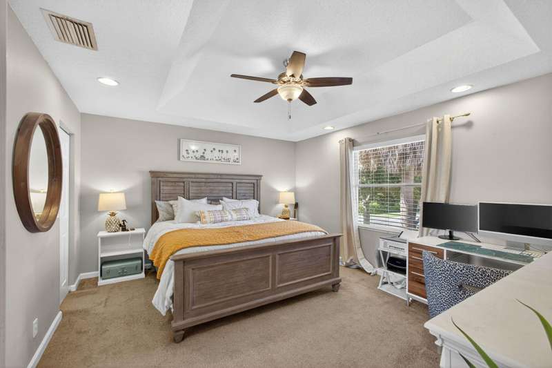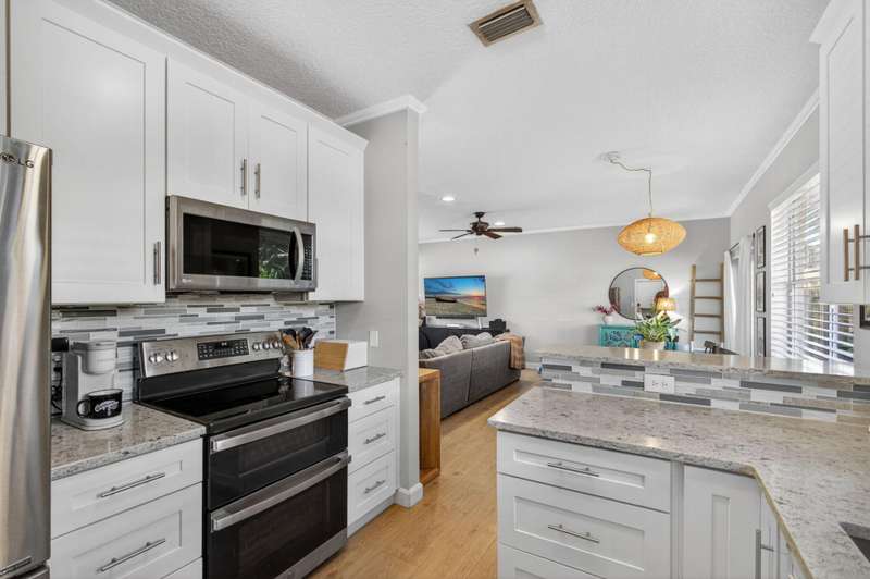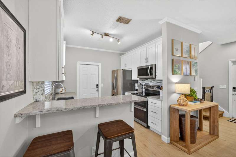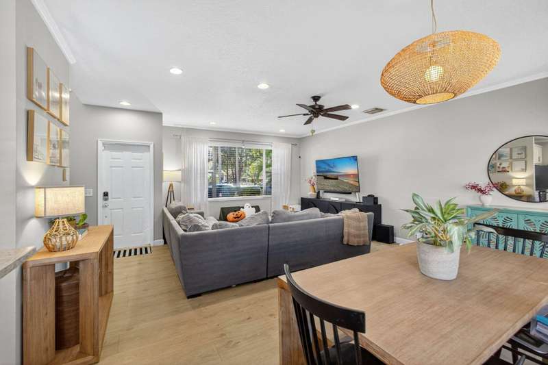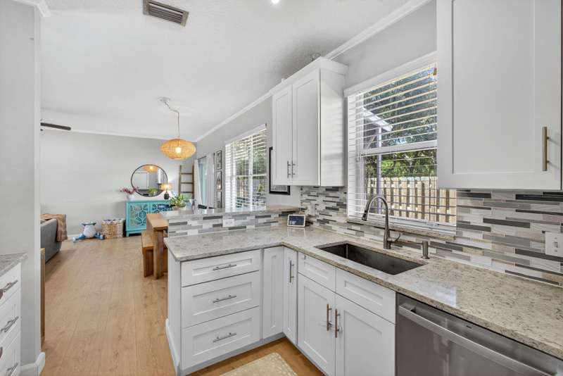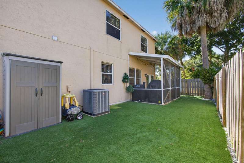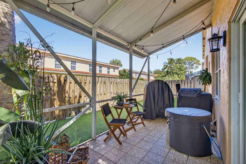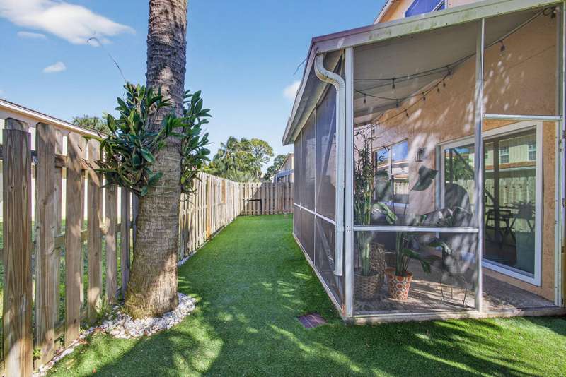 Fantastic location in Jupiter. Quick to I-95 and Turnpike. Walking distance to Jupiter Village Park and very close to shopping centers, and local Elementary and High School. Spacious 3 bedroom, 2.5 bath, and 1-car garage. Association fees are very low at $176/mo ($528.80 quarterly) and include lawn, community pool, water for irrigation, basic cable and common area maintenance. One of the largest parcels in the community. Peace of mind with a 2023 roof, a 2022 A/C, and 2021 water heater. Impact garage door and slider, panel shutters for all else. Bedroom closets are large. Kitchen offers white shaker cabinets, granite, and stainless appliances. Enjoy your screened in patio and private, fenced turf back lawn. Bathrooms need some love. Incredibly rare opportunity to live in Laurel Oaks