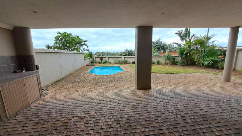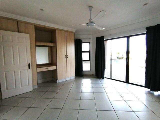 This spacious upmarket ground floor unit/apartment is located in an exclusive and sought after beach front complex in Shelly Beach, within walking distance to the beach and shopping mall. This lovely unit is tiled throughout with ceiling fans and down lights in all the rooms. The unit has three rooms, two bathrooms and kitchen which is open plan to the lounge/living area. The living room and main bedroom has large sliding doors opening to your own private patio/ entertainment and pool area. The main bedroom is ensuite while the other two bedrooms use the 2nd bathroom. It has a small manageable garden with an access gate leading to the beach. The complex is fully secured by an access-controlled gate and fencing. Provision is made for back-up water for the complex. There is a double automated garage with two open parking spaces in front of the garage and a lovely private courtyard between the garage and the apartment. The double garage is plumbed for for a washing machine. The unit is perfect for holiday of permanent stay.