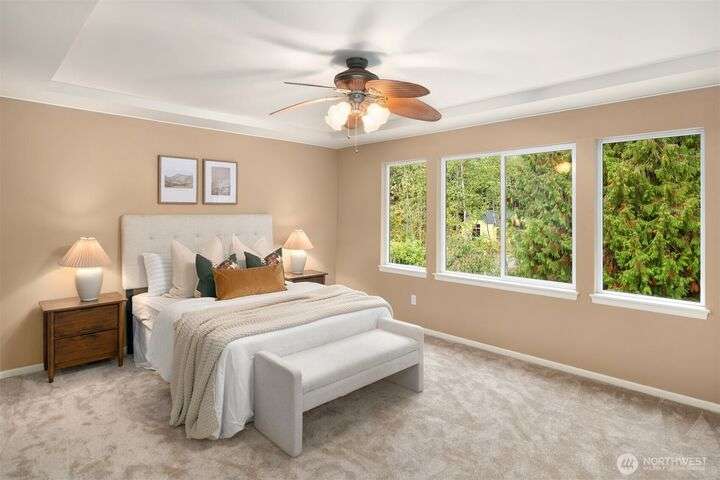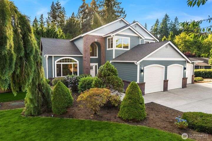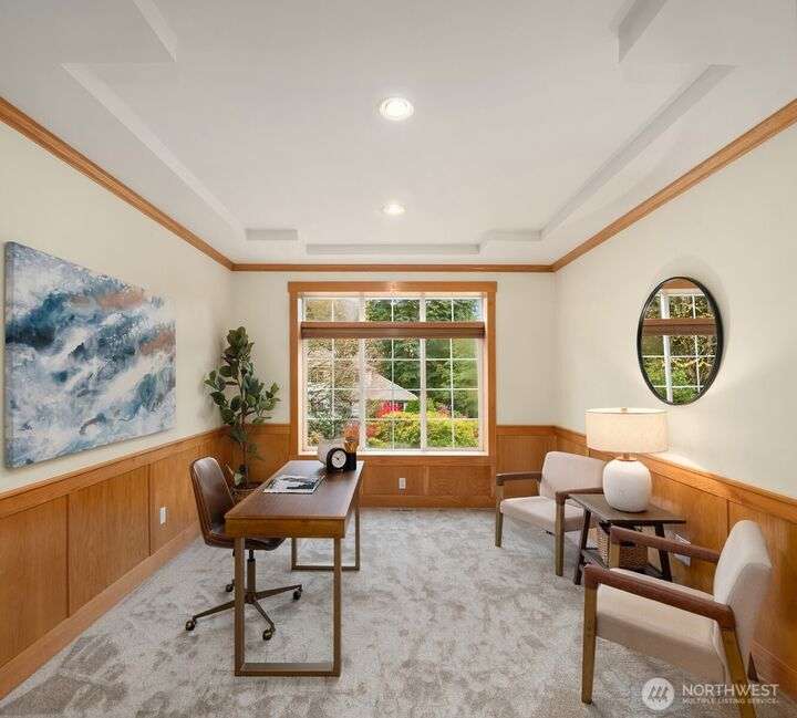 Serving timeless elegance. This classically inspired luxury residence is perfectly sited on an elevated, secluded lot with a tarmac driveway leading to a three-car garage and additional parking. Crafted with exceptional quality and refined finishes, this home offers a sprawling layout designed for every occasion. The executive wood-paneled office provides sophistication and function, with a discreet passage to the main floor bath. Showcase your art along the grand upper corridor, illuminated by soft natural light through a graceful laylight. An oversized upstairs bonus room invites entertainment. Ideal for gaming, theater, or gathering in style. This is a home for the discerning, who appreciate craftsmanship, privacy, and distinction.
