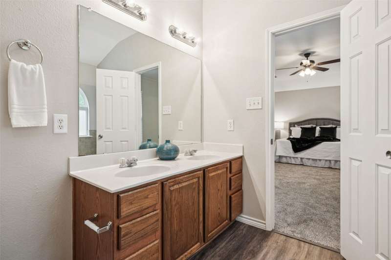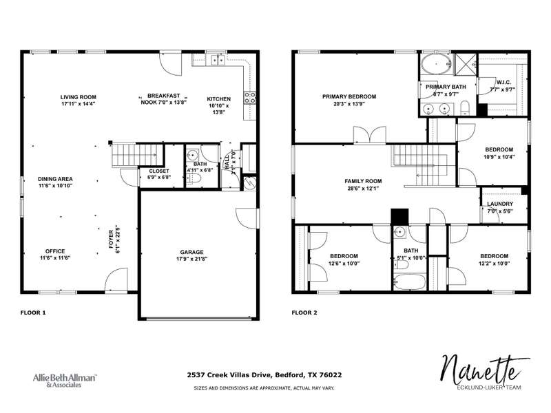 Welcome to 2537 Creek Villas Drive, a charming two-story home nestled on a desirable corner lot in the peaceful Creekside Villas of Bedford. This 4-bedroom, 2.1-bath residence offers 2,487 square feet of thoughtfully designed living space with an open floor plan that is both spacious and inviting. The main level features two comfortable living areas and two dining spaces, ideal for entertaining guests or enjoying everyday family life. Natural light fills the interiors, highlighting the homes warm finishes and flexible layout.The kitchen is a true centerpiece of the home, featuring ample counter space, a breakfast area, and a view into the living room. It offers both function and flowperfect for preparing meals while staying connected to the rest of the household.Upstairs, a versatile sitting area or game room provides the perfect spot for family activities, relaxation, or a private retreat. The primary suite includes a generous bedroom and en-suite bath with dual vanities, soaking tub, and separate shower, creating a true owners sanctuary. Additional bedrooms are well-sized to accommodate family or guests.Step outside to the open patio and enjoy peaceful views of the greenbelt directly behind the property. Surrounded by mature trees, this backyard retreat is perfect for outdoor dining, morning coffee, or unwinding at the end of the day.Located in the heart of Bedford, this home offers convenient access to shopping, dining, and entertainment with easy routes to both Dallas and Fort Worth. Families will appreciate the homes placement in the highly regarded Hurst-Euless-Bedford ISD, with nearby schools including Bell Manor Elementary, Central Junior High, and Trinity High Schoolrecognized for academic excellence and diverse programs.With its prime location, flexible floor plan, and serene outdoor setting, 2537 Creek Villas Drive is the perfect blend of comfort, community, and convenience.